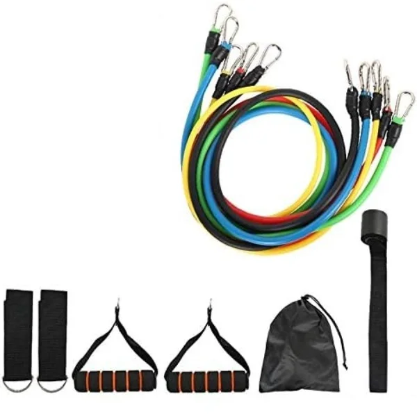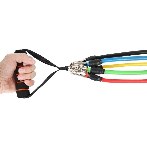 11 PARÇA ÇOK FONKSİYONLU SPOR EGZERSİZ BANDI SETİÜrün Özellikleri11 parça çok fonksiyonlu spor egzersiz bandı seti, evde, ofiste veya açık alanlarda etkili ve verimli bir antrenman yapmak isteyen kullanıcılar için tasarlanmıştır. Farklı direnç seviyelerine sahip egzersiz bantları sayesinde kol, omuz, göğüs, sırt, bacak ve karın kaslarını hedef alarak tüm vücut çalışmasına olanak tanır. Direnç bantları kas kuvvetini artırmaya, esnekliği geliştirmeye ve yağ yakımını desteklemeye yardımcı olur. Kapı aparatı ve tutma sapları sayesinde farklı egzersiz varyasyonları rahatlıkla uygulanabilir. Hafif ve taşınabilir yapısı ile spor salonuna gitmeden, dilediğiniz her yerde kişisel antrenman rutini oluşturmanızı sağlar. Dayanıklı ve esnek malzemeden üretilmiş bantlar, düzenli kullanıma uygundur ve uzun ömürlü performans sunar. Yeni başlayanlardan ileri seviye sporculara kadar herkesin kullanımına uygundur ve evde profesyonel seviyede spor yapma imkânı sağlar.Paket İçeriği5 adet farklı direnç seviyesine sahip egzersiz bandı2 adet tutma sapı2 adet ayak bileği bandı1 adet kapı aparatı1 adet taşıma çantası