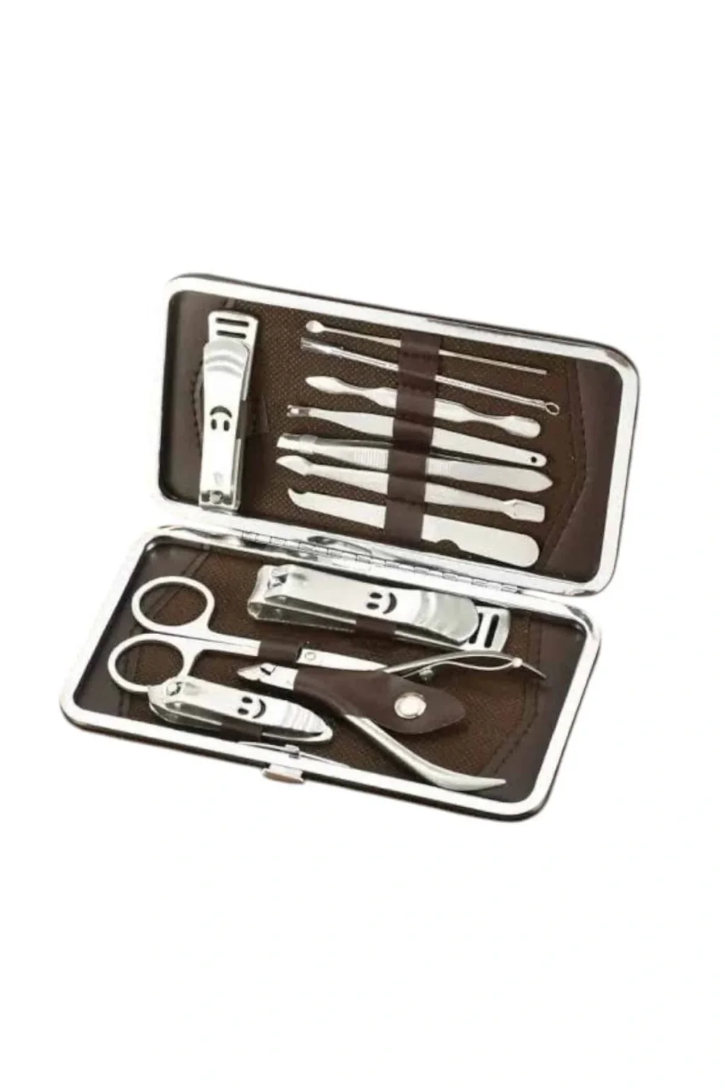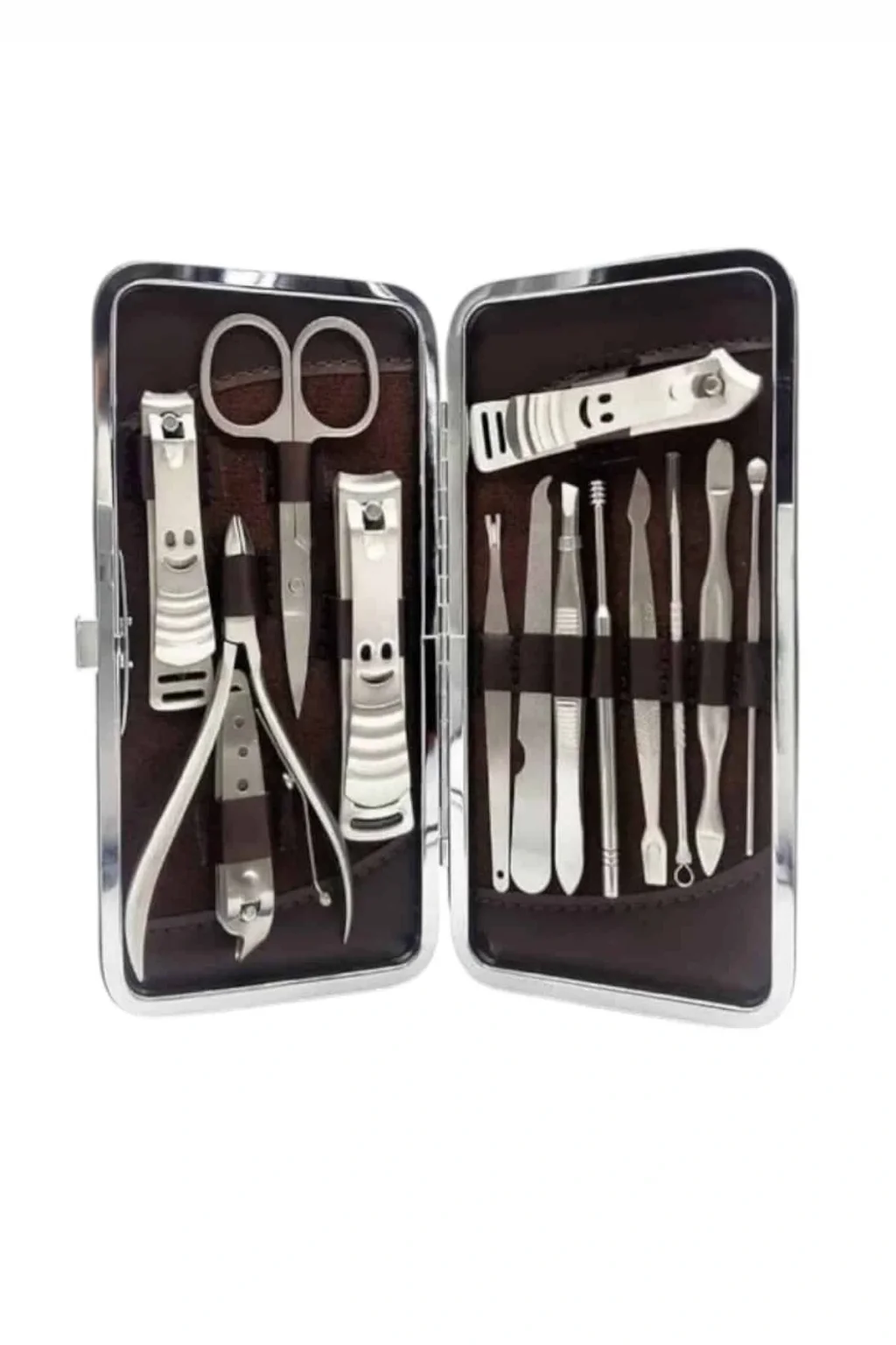 Özel deri çantalı bu hepsi bir arada bakım seti ile el ve ayak bakımınızı zahmetsizce yaparak kuaför masrafından kurtulabilirsiniz. Paslanmaz çelikten üretilmiş dayanıklı ve kaliteli aparatları sayesinde uzun ömürlü kullanım sunan bu set, taşınabilir boyutu ile çantanızda rahatlıkla taşınabilir ve seyahatlerinizde size eşlik eder. Setin içerisinde kulak çekme aparatı, çok amaçlı makas, manikür makası, üç farklı tırnak makası/düzeltici, pense, kir temizleme aparatı, kaş cımbızı, manikür bıçağı, tırnak törpüsü ve akne iğnesi bulunur. Şık ve kullanışlı deri çantasıyla düzenli bir şekilde saklanabilen bu set, hem günlük kullanım hem de hediye alternatifi olarak mükemmel bir seçenektir.