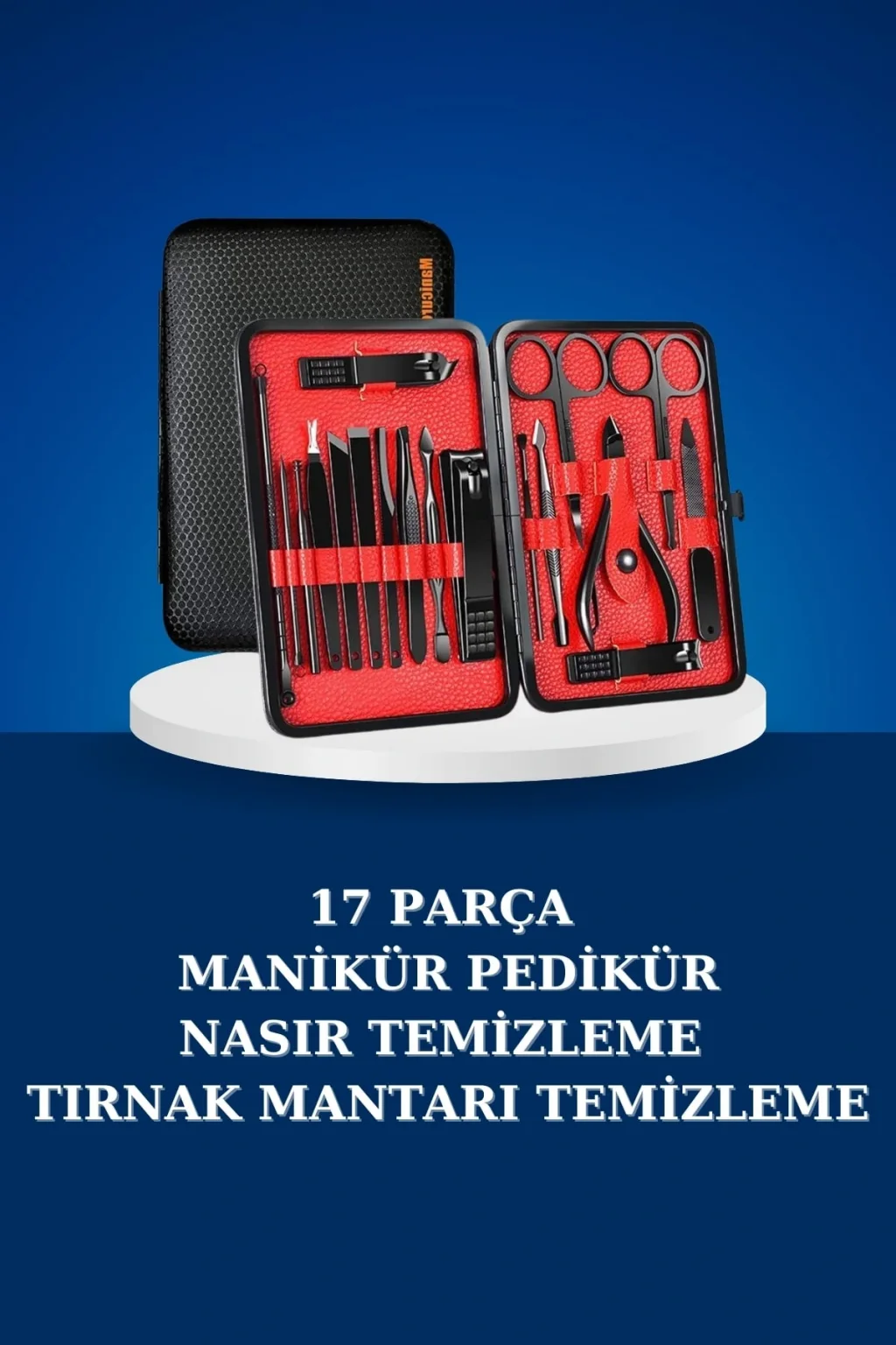 Kendi el ve ayak bakımınızı profesyonel düzeyde yapmak isteyenler için tasarlanan bu 17 parçalık manikür seti, yüksek kaliteli paslanmaz çelik malzemeden üretilmiştir. Dayanıklı ve hijyenik yapısıyla kolay temizlenebilir, uzun ömürlüdür ve korozyona karşı koruma sağlar. Yeni nesil siyah kaymaz parlatma teknolojisi, hem estetik bir görünüm sunar hem de aletlerin kavranmasını ve kullanılmasını kolaylaştırır. Özel tasarımlı deri kaplama kutusu, tüm parçaları düzenli bir şekilde saklamanıza olanak tanırken, hafif ve taşınabilir yapısıyla seyahatlerinizde de yanınızda bulundurabilirsiniz. Büyük, küçük ve sivri uçlu tırnak makasları, törpü, cımbız, çeşitli pedikür bıçakları, tırnak kaldırma aleti ve kulak temizleme aparatı gibi geniş bir içeriğe sahip bu set, bakımınızı zahmetsiz ve pratik hale getirir. Kendiniz veya sevdikleriniz için şık ve fonksiyonel bir hediye alternatifi olarak da tercih edebilirsiniz.