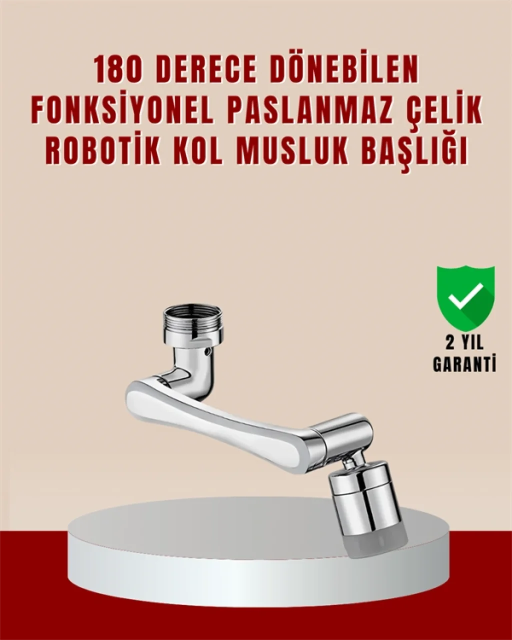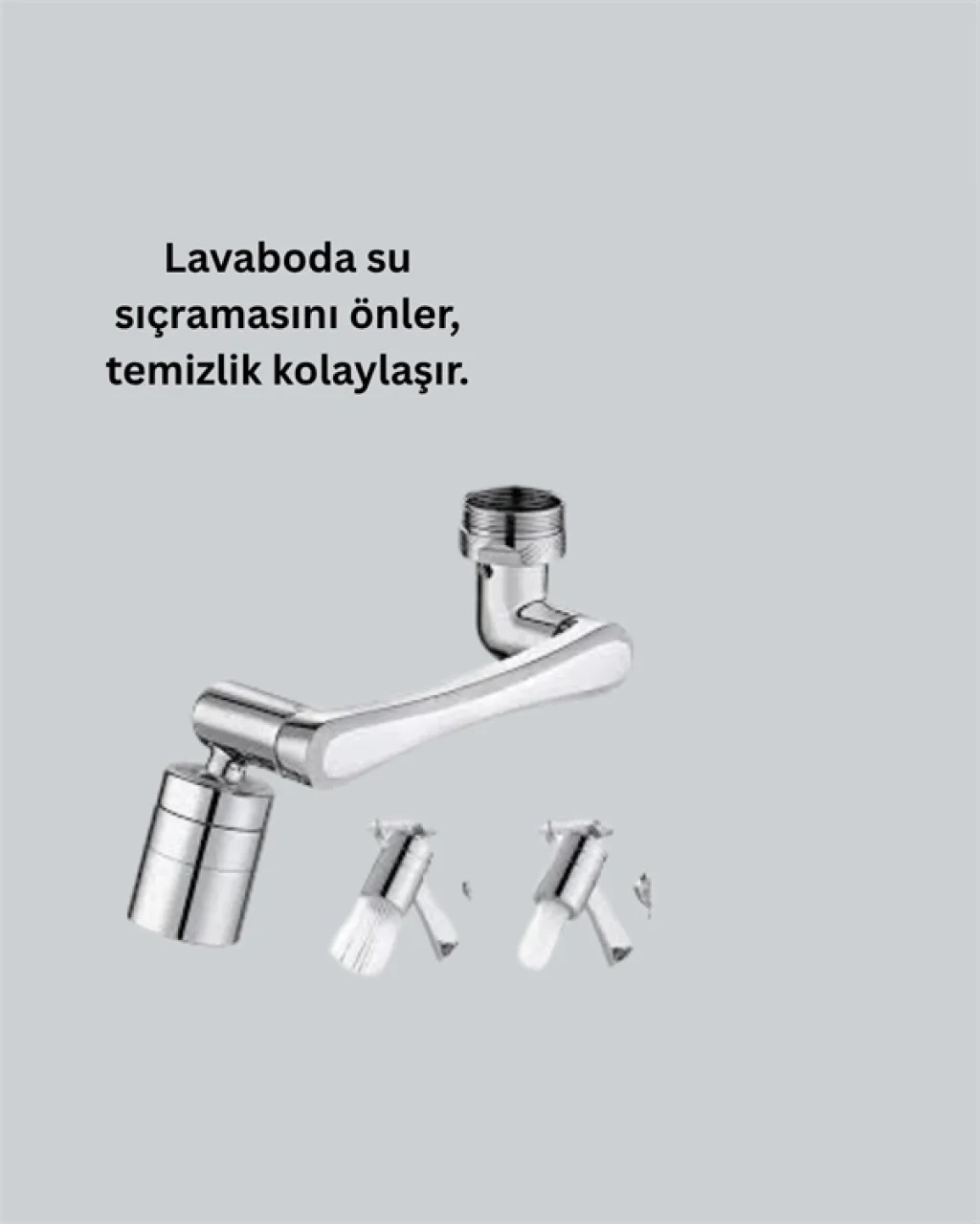 Yenilikçi 1080° dönebilen robotik kol tasarımı sayesinde bu musluk havalandırıcı, suyun yönünü istediğiniz gibi ayarlamanıza olanak tanır. 3 eklemli döner kolu ile hem yukarı-aşağı hem de sağa-sola tam esneklik sunar. Lavabo temizliğini kolaylaştırır, suyun farklı yönlere akmasını sağlar. El, yüz yıkama, meyve-sebze durulama gibi günlük işlerde hijyenik ve konforlu bir kullanım deneyimi sunar. Özellikle dar lavabolarda suyun sıçramasını önleyerek hem temizlik hem kullanıcı rahatlığı sağlar.