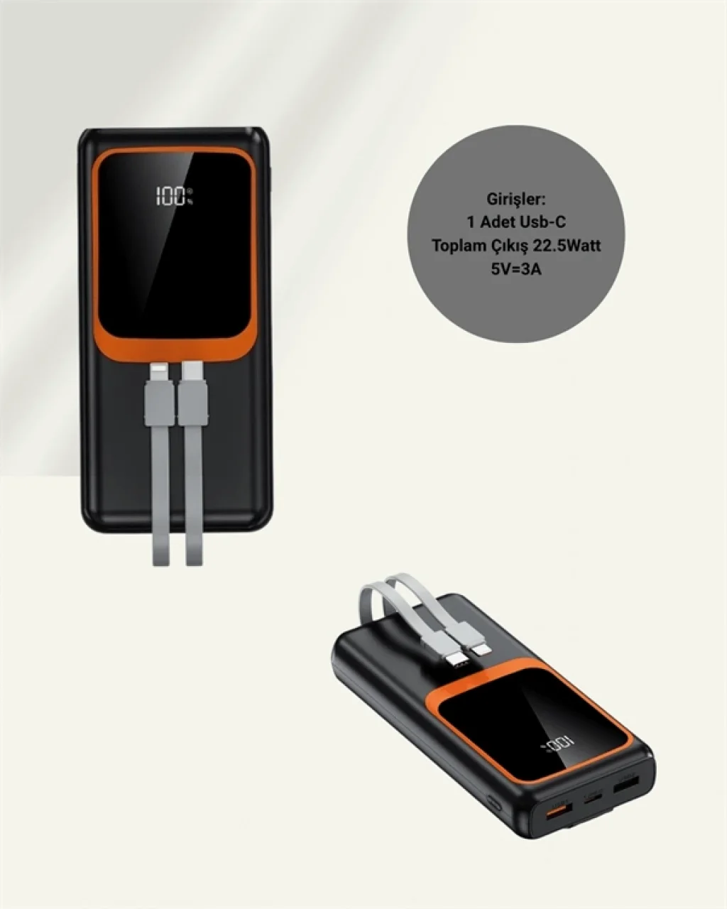 Gerçek 20.000 mAh kapasiteye sahip bu powerbank, tek şarjla birden fazla cihazı birden çok kez şarj edebilir. Uzun yolculuklar, dış mekan kullanımı ve yoğun günler için ideal bir enerji kaynağıdır. Sağlam dış gövdesiyle darbelere karşı dayanıklıdır.