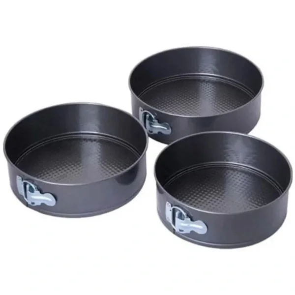 3'LÜ KELEPÇELİ KEK KALIBI SETİÜrün ÖzellikleriFırın kullanımına uygun olarak tasarlanmış 3’lü kelepçeli kek kalıbı seti, keklerinizi pratik ve kusursuz bir şekilde hazırlamanıza yardımcı olur. Kelepçeli tasarımı sayesinde kalıptan çıkarma işlemi oldukça kolaydır. Yanmaz ve yapışmaz kaplaması sayesinde keklerin yüzeye yapışmasını önleyerek temizliği kolaylaştırır. Dayanıklı metal yapısı uzun ömürlü kullanım sunarken, cheesecake, pasta ve diğer hamur işlerinde ideal sonuçlar elde etmenizi sağlar. Elde yıkamaya ve düşük sıcaklıkta bulaşık makinesinde yıkanmaya uygundur.24 cm, 26 cm ve 28 cm olarak üç farklı boyutta gelir. Paket İçeriği1 adet 3'lü Kelepçeli Kek Kalıbı Seti