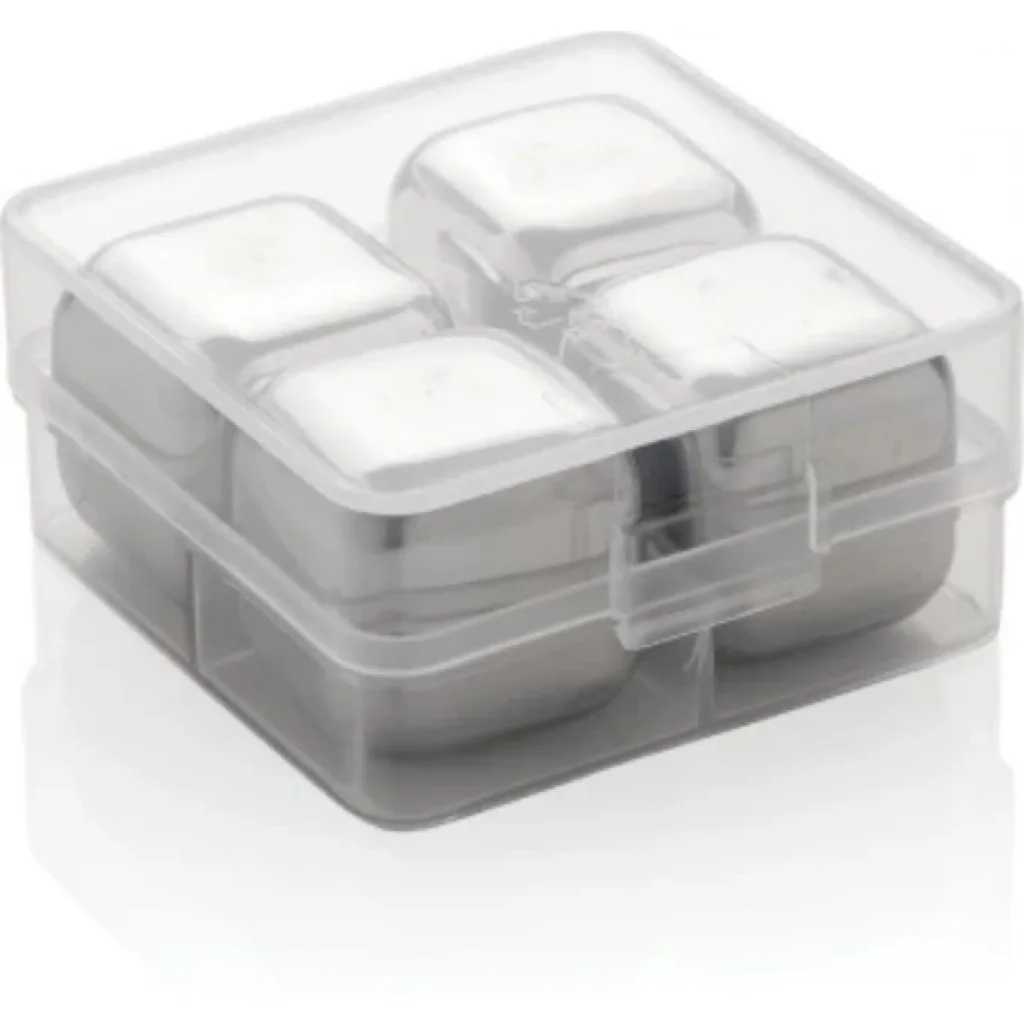 4'LÜ ÇELİK METAL KAPLAMA BUZ TAŞIÜrün ÖzellikleriPaslanmaz çelik malzeme ile kaplanmış bu taş buz küpleri, içeceklerinizi sulandırmadan uzun süre soğuk tutmak için ideal bir alternatiftir. Dış yüzeyi metal kaplama olan ürün, içerisindeki özel sıvı sayesinde buzdolabında dondurularak defalarca kullanılabilir. Geleneksel buz kalıplarının aksine içeceğin tadını bozmaz, özellikle viski, votka, soda gibi içecekler için tercih edilir. Küplerin yüzeyi pürüzsüzdür, bu da hem bardak çizilmesini önler hem de temizlik kolaylığı sağlar. Her biri aynı ebatta olan dört taş, pratik saklama kutusunda gönderilir ve hijyenik koşullarda muhafaza edilebilir.Paket İçeriği1 adet 4'lü Çelik Metal Kaplama Buz Taşı