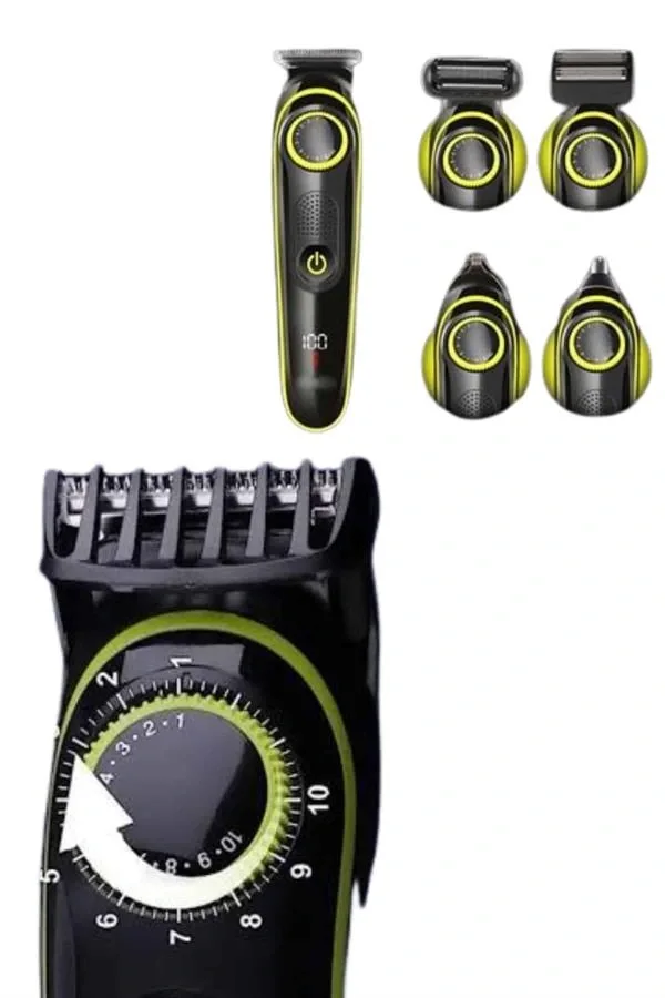 5 Başlıklı Şarjlı Tıraş Makinesi Led Ekran Saç Sakal Ense Tıraşına Uygun Bakım Seti