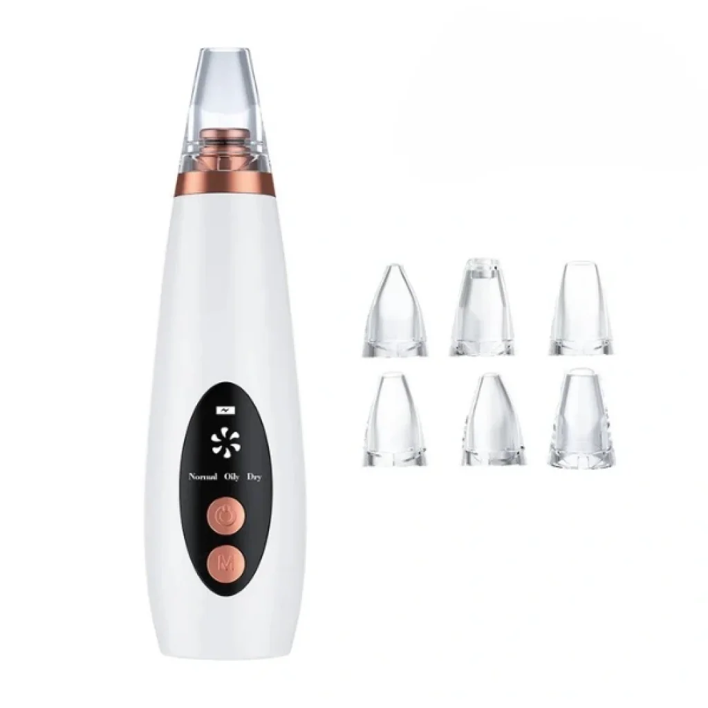 6 BAŞLIKLI VAKUMLU SİYAH NOKTA TEMİZLEYİCİÜrün Özellikleri6 Başlıklı Vakumlu Siyah Nokta Temizleyici, güçlü vakum teknolojisiyle ciltteki siyah noktaları, yağı ve kirleri derinlemesine temizler. Gözeneklerde biriken fazla sebumu ve ölü deriyi emerek daha pürüzsüz ve canlı bir cilt görünümü sağlar. Cilt tipinize uygun olarak 3 farklı çekiş modu sunar:Yağlı Cilt Modu: Hassas ciltler için düşük seviye, nazik temizlik sağlar.Normal Mod: Orta seviye emiş gücüyle derin gözenek temizliği sunar.Kuru Cilt Modu: Kuru ciltlerde siyah nokta ve komedonları etkili şekilde giderir.Cihazın 6 farklı değiştirilebilir başlığı, yüzün farklı bölgelerinde optimum temizlik sağlar. Geniş başlıklar yanak ve alın bölgesinde kullanılabilirken, küçük başlıklar burun ve çene gibi dar alanlar için idealdir. Bazı başlıklar ayrıca ciltte eksfoliasyon etkisi yaparak ölü deriyi arındırır ve yeni hücre oluşumunu destekler.Vakum masajı, ciltteki kan dolaşımını artırarak daha sağlıklı, ışıltılı bir görünüm kazandırır. Kullanımı son derece kolay olan cihaz, LCD ekran göstergesi veya ışıklı uyarı sistemiyle emiş seviyesini ve pil durumunu gösterir. Kolay temizlenebilir başlıkları ile hijyenik bir bakım deneyimi sunar.Paket İçeriği1 adet siyah nokta temizleyici cihaz6 adet değiştirilebilir başlık1 adet USB şarj kablosu