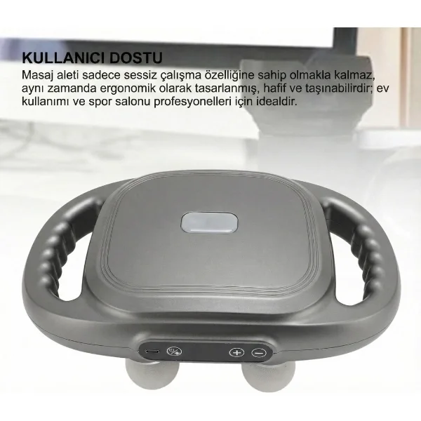 8 BAŞLIKLI ŞARJLI ISITMALI MASAJ ALETİÜrün Özellikleri8 başlıklı şarjlı ısıtmalı masaj aleti, gün içinde oluşan kas gerginliğini azaltmaya ve rahatlama hissini artırmaya yardımcı olmak üzere tasarlanmıştır. Boyun, sırt, omuz, bel, bacak ve ayak gibi farklı bölgelerde kullanılabilen değiştirilebilir başlıkları sayesinde hedefli masaj imkânı sunar. Sıcaklık desteği, masaj etkisini güçlendirerek kasların gevşemesine katkı sağlar ve özellikle yoğun geçen günlerin ardından konforlu bir kullanım deneyimi sunar. Güçlü motoru ve ayarlanabilir hız/şiddet kademeleri ile masaj yoğunluğunu kişisel ihtiyaca göre ayarlama olanağı verir. Şarjlı bataryası sayesinde kablo derdi olmadan evde, ofiste ya da dilediğiniz her yerde pratik şekilde kullanılabilir. Ergonomik ve kompakt gövdesi, kaymaz tutuş yüzeyi ve dengeli ağırlık dağılımı ile uzun süreli kullanımlarda bile konfor sağlar. Sessiz çalışma yapısı, günün her saatinde rahatsızlık vermeden kullanım imkânı sunar. Antrenman sonrası sporcular, aktif yaşam sürenler ve masa başında uzun süre oturanlar için günlük bakım rutinine kolayca entegre edilebilecek fonksiyonel bir masaj çözümüdür.Bu ürün bir sağlık cihazı değildir; tıbbi teşhis veya tedavinin yerine geçmez. Hamilelik, kalp pili, açık yara gibi durumlarda kullanmadan önce doktorunuza danışmanız önerilir.Paket İçeriği1 adet 8 Başlıklı Şarjlı Isıtmalı Masaj Aleti