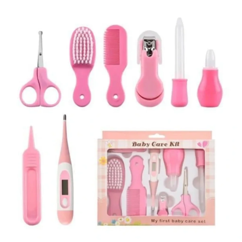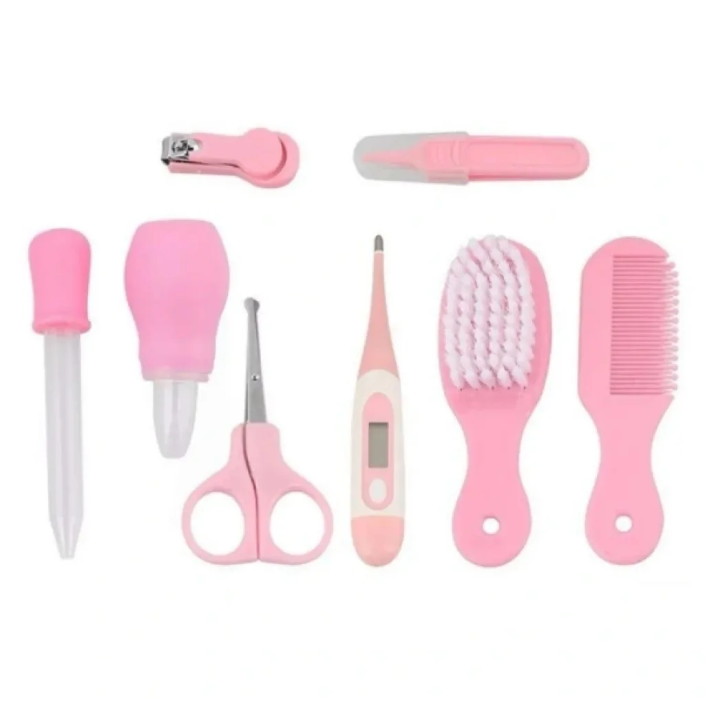 8 PARÇA BEBEK BAKIM SETİ PEMBE RENKÜrün Özellikleri8 Parça Bebek Bakım Seti, bebeklerin temel kişisel bakım ihtiyaçlarını karşılamak için özel olarak tasarlanmış bir settir. Ebeveynlerin günlük bakım rutinlerini kolaylaştıran bu set, bebeklerin sağlığını ve konforunu ön planda tutar. Set içindeki tırnak makası, bebeklerin hassas tırnakları için güvenli ve ergonomik bir yapıda tasarlanmıştır. Makas uçları yuvarlatılmış olup, bebekler için güvenli kesim sağlar. Cımbız, bebek kulakları ve burun gibi hassas bölgelerde hijyen sağlamak amacıyla kullanılır. Burun aspiratörü, bebeklerin burunlarını nazikçe temizlemek için idealdir. Fırça, yumuşak kıllarıyla bebek saçına zarar vermeden bakım yapar. Tarak, düğümsüz ve nazik bir tarama deneyimi sunar. Termometre, vücut sıcaklığını dijital olarak ölçer. Damla şırıngası (damlalık), ilaç veya sıvı takviyelerini hassas bir şekilde vermek için kullanılır. Bu set, yenidoğan ve küçük bebeklerin bakımını düzenli şekilde yapabilmek için mükemmel bir çözüm sunar ve genellikle taşıma çantasıyla birlikte gelir.Paket İçeriği1 Adet 8 Parça Bebek Bakım Seti Pembe Renk