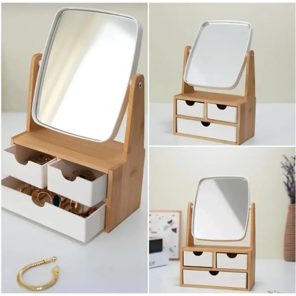 AHŞAP 3 ÇEKMECELİ AYNAÜrün ÖzellikleriAhşap 3 çekmeceli ayna, şık ve fonksiyonel bir tasarıma sahiptir. Makyaj yaparken veya kişisel bakımınızı gerçekleştirirken rahatlıkla kullanabileceğiniz geniş bir aynaya sahiptir. Aynanın alt kısmında bulunan üç çekmece, takı, makyaj malzemeleri veya diğer küçük eşyalarınızı düzenli bir şekilde saklamanızı sağlar. Ahşap malzeme, doğal ve zarif bir görünüm sunar. Hem kullanım kolaylığı hem de estetik görünümü ile her türlü iç mekan için idealdir.Paket İçeriği1 Adet Ahşap 3 Çekmeceli Ayna