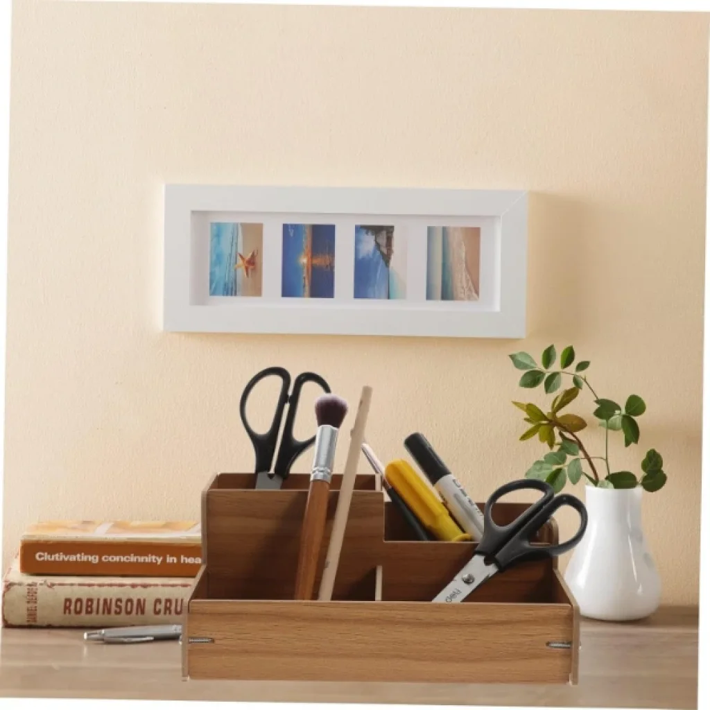 AHŞAP MASA ÜSTÜ DÜZENLEYİCİ KUTUÜrün ÖzellikleriAhşap masa üstü düzenleyici kutu, çalışma alanınızı düzenli ve şık hale getirmek için mükemmel bir çözümdür. Doğal ahşap malzemeden üretilmiş olup sağlam ve dayanıklı bir yapıya sahiptir. Kalem, makas, fırça, cetvel ve diğer ofis ya da makyaj malzemelerinizi düzenli bir şekilde saklamanıza yardımcı olur. Bölmeli yapısı sayesinde farklı eşyalarınızı kategorilere ayırarak kullanabilirsiniz. Şık ve fonksiyonel tasarımı sayesinde ofis masalarında, çalışma odalarında, mutfakta veya makyaj malzemeleri düzenleyicisi olarak rahatlıkla kullanılabilir. Ürün demonte olarak gönderilmektedir ve vidalar ile kolayca monte edilebilir. Hafif ve taşınabilir yapısı sayesinde istenilen her yere kolayca yerleştirilebilir.Paket İçeriği1 adet ahşap masa üstü düzenleyici kutu