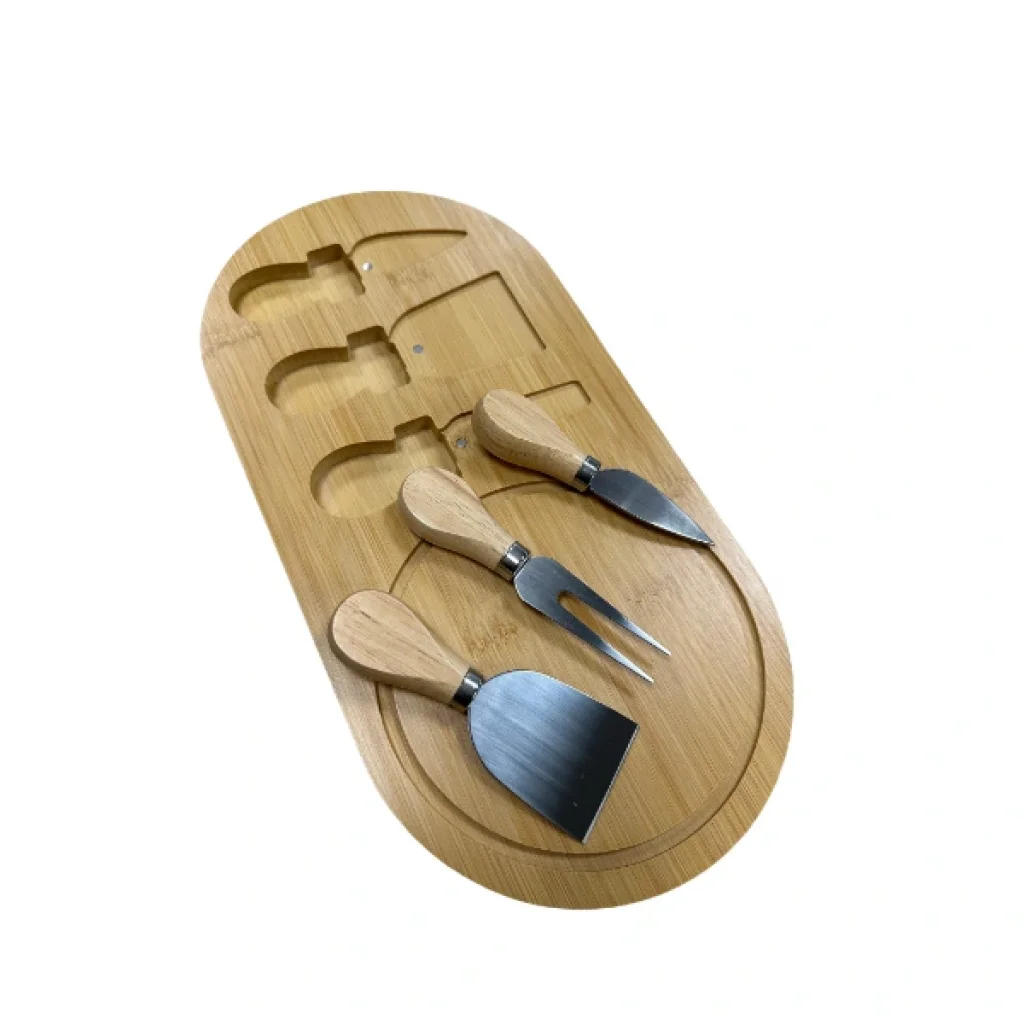 AHŞAP PEYNİR KESME VE SUNUM SETİÜrün ÖzellikleriAhşap peynir kesme ve sunum seti, peynir severler için ideal bir üründür. Şık ahşap malzeme kullanılarak üretilmiş olup, dayanıklı ve estetik bir görünüme sahiptir. Set, peynir kesme bıçağı, çatal ve sunum spatulası gibi parçalarla birlikte gelir. Ahşap sapları ve paslanmaz çelik uçları ile uzun süreli kullanım sağlar. Peynirlerinizin şık bir şekilde sunulmasını sağlayacak bu set, özellikle özel davetlerde veya günlük kullanımlar için uygundur. Hem şık hem de fonksiyonel olan bu set, mutfakta kullanım kolaylığı sağlar.Paket İçeriği1 Adet Ahşap Peynir Kesme ve Sunum Seti