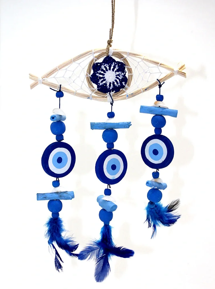 AHŞAP RÜZGAR ÇANI NO:5Ürün ÖzellikleriAhşap Rüzgar Çanı No:5, nazar boncuğu ve mavi tüy detayları ile şık bir tasarıma sahip, doğal ahşap malzeme kullanılarak üretilmiştir. Nazar boncuğu, kötü enerjilerden korunmayı simgelerken, mavi tüy detayları ise huzur ve pozitif enerjiyi temsil eder. Rüzgarla hareket ettiğinde, hoş ve melodik bir ses çıkararak etrafınıza huzur verici bir atmosfer yaratır. Bahçe, balkon veya iç mekanlarda rahatlıkla kullanılabilir. Hem dekoratif hem de fonksiyonel olan bu rüzgar çanı, estetik ve koruyucu özellikleriyle harika bir hediye seçeneği sunar.Paket İçeriği1 adet Ahşap Rüzgar Çanı No:5