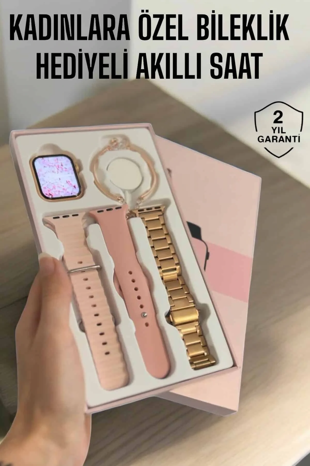 Tam Donanımlı Akıllı Saat - Aktivite ve İletişim Kolaylığı Yüksek Batarya Kapasitesi: 2000-3000 mAh bataryası ile uzun süreli kullanım sağlar, seyahatlerde bile şarj endişesini ortadan kaldırır. Rose Gold Estetiği: Zarif ve şık tasarımıyla stil sahibi kullanıcıların tercihi. Aktivite ve Fitness Takibi: Adımsayar, kalori ölçümü ve egzersiz takibiyle sağlıklı yaşam hedeflerinize ulaşın. Uyku Analizi: Uyku düzeninizi izler, uyku kalitenizi artırmak için veriler sunar. Nabız Ölçer ve Sağlık İzleme: Kalp atış hızınızı anlık izleyerek sağlık hedeflerinize ulaşmanıza yardımcı olur. Entegre GPS Desteği: Rotanızı hassas bir şekilde izler ve yön bulma ihtiyaçlarınızda yardımcı olur. Bluetooth ile Kolay İletişim: Sesli görüşme özelliğiyle telefonunuza dokunmadan aramalarınıza cevap verebilirsiniz. Titreşimli Bildirimler: Gelen aramalar, mesajlar ve uygulama uyarılarını titreşimle kolayca fark edin.Gelişmiş özellikleri ve şık tasarımıyla hem işlevsellik hem de estetik arayan kullanıcılar için mükemmel bir tercih.