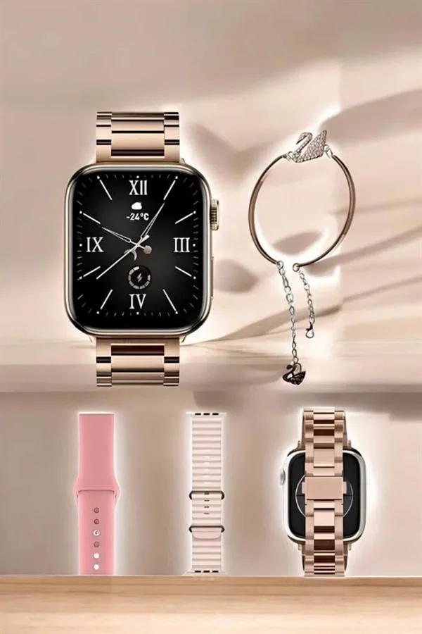 Uzun Pil Ömrü (2000-3000 mAh): Yüksek kapasiteli bataryası sayesinde gün boyunca şarj endişesi olmadan tüm özellikleri kullanabilirsiniz. Rose Gold Kasa Şıklığı: Modern ve zarif rose gold tasarımıyla günlük ve özel kombinlerinizi tamamlar. Adımsayar ve Kalori Takibi: Günlük aktivitelerinizi izleyin, yakılan kaloriyi hesaplayarak fitness hedeflerinize ulaşın. Uyku İzleme Fonksiyonu: Uyku düzeninizi analiz ederek daha kaliteli bir uyku deneyimi için önerilerde bulunur. Nabız ve Sağlık Sensörleri: Kalp atış hızınızı anlık olarak takip ederek sağlığınızı izler ve kayıt altına alır. Hassas GPS Teknolojisi: Konumunuzu doğru bir şekilde belirler ve açık hava sporlarında yön bulmanızı kolaylaştırır. Bluetooth Arama Özelliği: Akıllı saatiniz üzerinden gelen aramaları cevaplayabilir, eller serbest bir iletişim deneyimi yaşayabilirsiniz. Titreşim Bildirimleri: Gelen çağrı, mesaj ve uygulama uyarılarını sessiz ve etkili bir şekilde alın.Sağlık takibi, spor izleme ve günlük kullanım için ideal olan bu akıllı saat, zarif tasarımıyla teknoloji ve estetiği bir araya getiriyor.