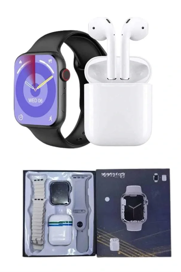 Akıllı Saat Gümüş Kasa Bluetooth Kulaklık Hediyeli Çok Fonksiyonlu İkili Set