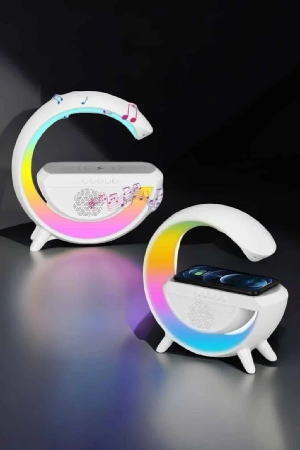 Kablosuz Şarj Özellikli Bluetooth Hoparlör Gece Lambası, şık tasarımı ve birden fazla işlevi bir arada sunarak modern yaşam tarzınıza mükemmel bir uyum sağlar. Bu cihaz, yüksek kaliteli LED gece lambası özelliği ile ortamınıza sıcak beyaz ışıktan renkli RGB aydınlatmalara kadar farklı ışık seçenekleri sunar. Ayarlanabilir parlaklık ayarları sayesinde hem bir çalışma lambası hem de dinlendirici bir gece lambası olarak kullanılabilir. Kompakt boyutları ve hafif yapısı ile kolay taşınabilir olan bu ürün, yalnızca evde değil, ofiste veya seyahatlerde de kullanılabilir. Evinize stil ve işlevsellik katmakla kalmaz, aynı zamanda başucu arkadaşı olarak günlük hayatınızı kolaylaştırır.