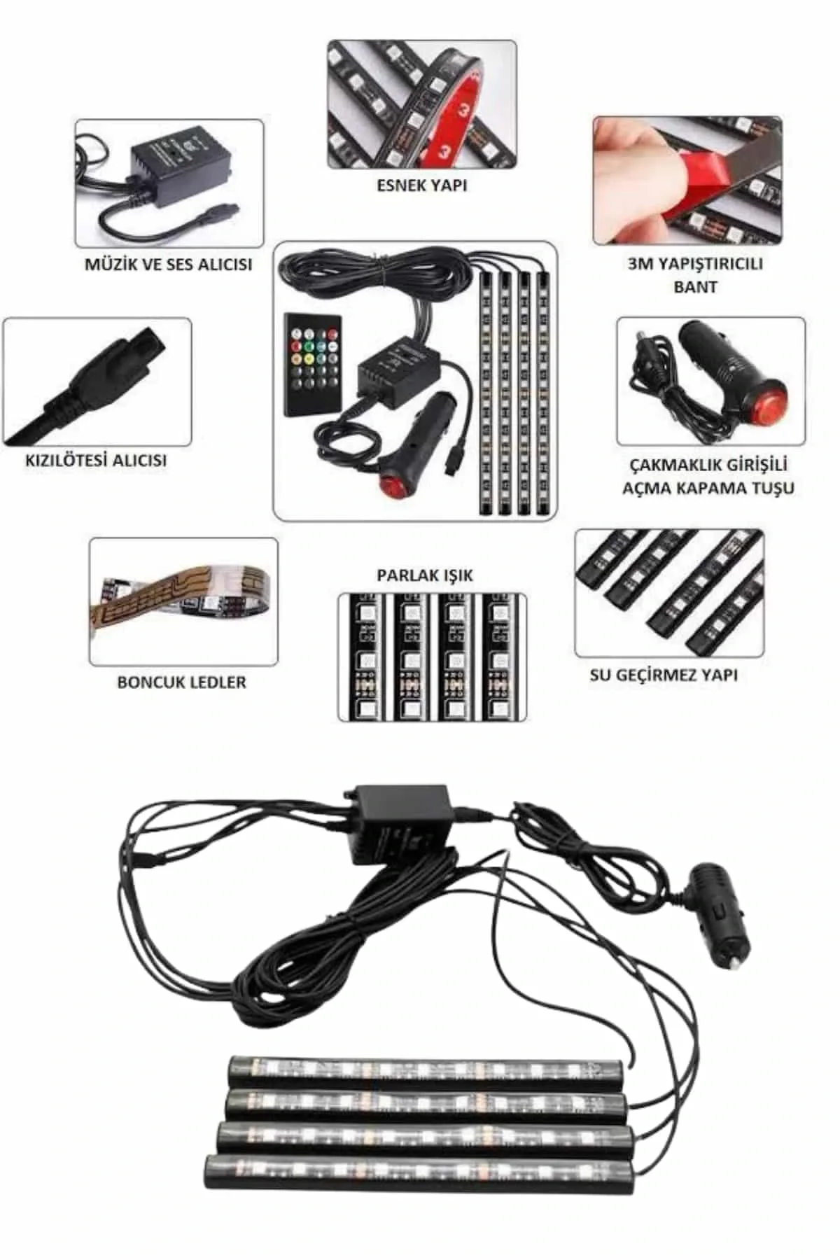 Araç İçi Ayak Altı Led 12 Led Işık Sese Müziğe Duyarlı RGB Işıklı Aydınlatma Seti