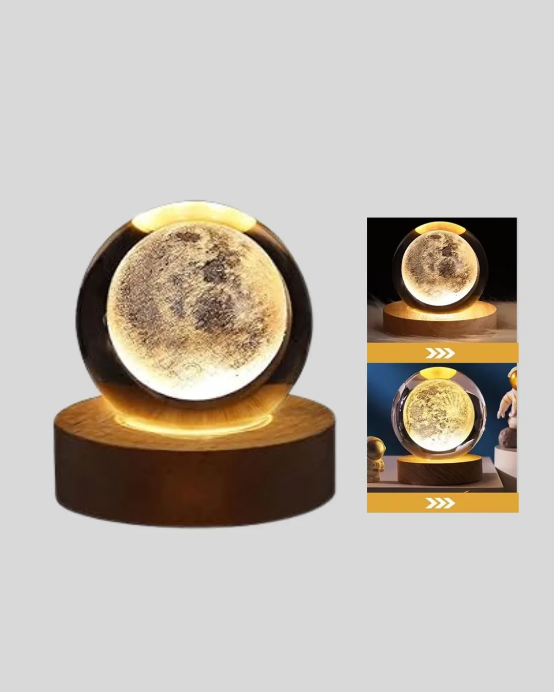 Ay Temalı Kristal Küre, bulunduğu ortama yalnızca ışık değil, aynı zamanda duygusal bir atmosfer katan eşsiz bir dekoratif lambadır. Kürenin içinde 3D lazer ile işlenmiş detaylı ay motifi, ışık yandığında adeta gerçek bir uydu görünümü yaratır. Kristalin yüksek parlaklığı ve ışıltı gücü sayesinde ay yüzeyi, loş ortamda daha belirgin hale gelir ve göz kamaştırıcı bir ışık oyunu sunar.Üründe kullanılan kristal materyal, yüksek dayanıklılık ve kaliteli ışık kırılımı sağlar. Bu sayede ışık yumuşak bir şekilde dağılır ve ortama sıcak bir parlaklık yayılır. 8 cm boyutundaki küre, hem dekoratif hem işlevsel bir boyuta sahiptir. Ahşap taban ise ürünün doğal görünümünü tamamlar ve kristal küre ile şık bir kontrast oluşturur. Tabanın 7 cm genişliği, ürünü her yüzeyde dengede tutar.Gece lambasının en önemli özelliklerinden biri, ışığının göz yormamasıdır. Sıcak LED ışığı, özellikle gece saatlerinde rahatlama, uykuya geçiş veya meditasyon için ideal bir ortam sağlar. Işığı açmak için USB kablosunu takmanız yeterlidir. Ekstra düğme veya karışık ayarlarla uğraşmadan son derece pratik bir kullanım elde edersiniz.Ay Küre Gece Lambası, estetik bir dekor objesi olmasının yanı sıra ruhsal dinginlik sunan bir aydınlatma kaynağıdır. Ev, ofis, yatak odası, çalışma alanı, hatta hediye kutuları için mükemmel bir seçimdir. Özellikle uzay ve astronomi tutkunu kişilerin ilgisini çeken bu lamba, modern dekorasyonun güçlendirici bir parçası haline gelir.Sevdiklerine özel, anlamlı ve dekoratif bir hediye arayan herkes için ideal bir seçimdir. Hem işlevsel hem de sanatsal bir ürün olması sayesinde her ortamda dikkat çeker.