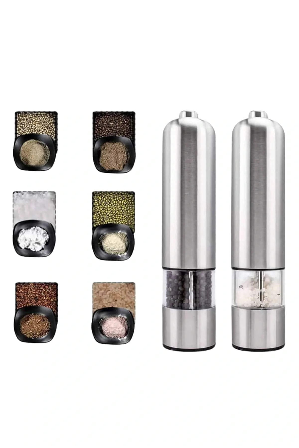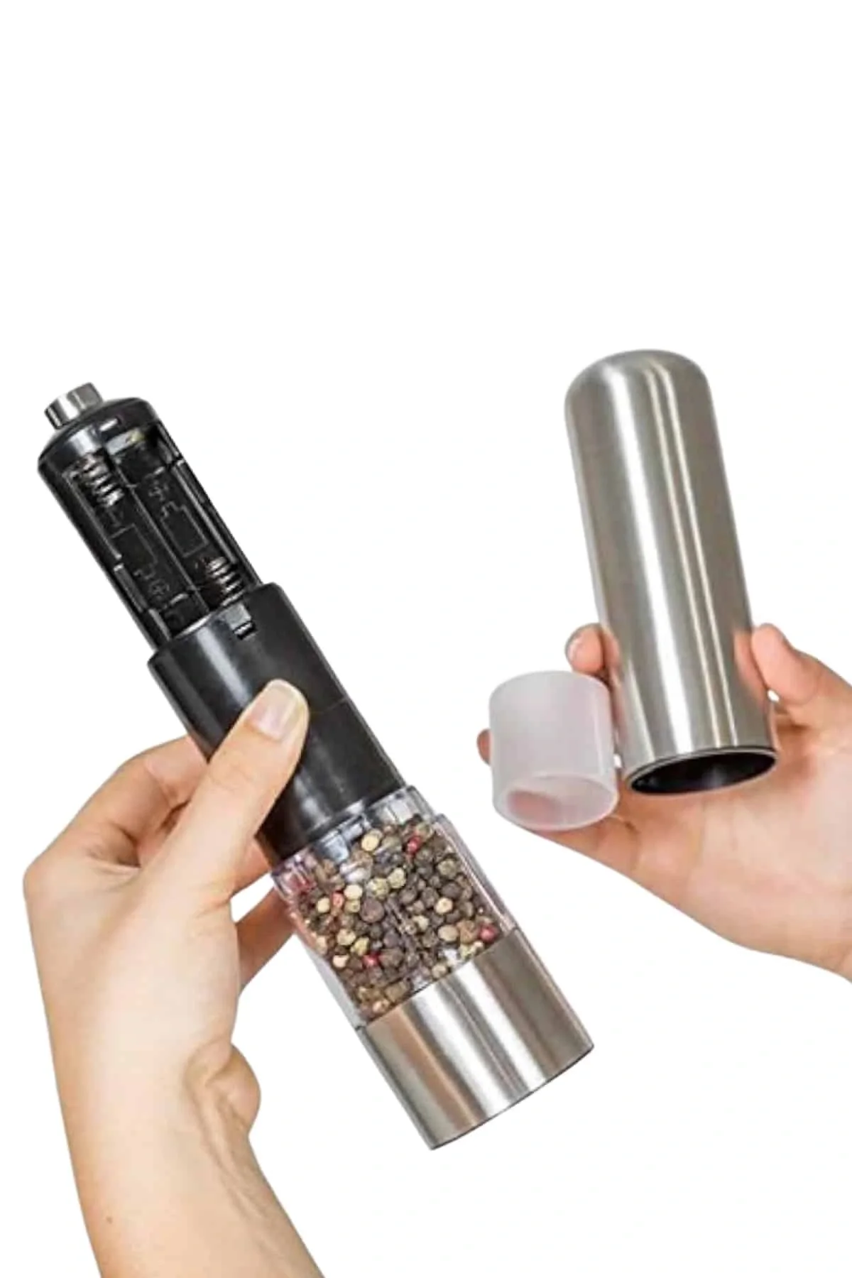 Mutfakta pratikliği ve şıklığı bir araya getiren otomatik pilli tuz & karabiber öğütücü seti, yemeklerinize lezzet katarken size konforlu bir kullanım sunar. Paslanmaz çelik gövdesi ve akrilik haznesi ile uzun ömürlü ve dayanıklı bir yapıya sahiptir. Güçlü motoru sayesinde tuz, karabiber ve diğer taneli baharatları kolayca öğütebilir, böylece yemeklerinize taze baharatların aromasıyla zenginlik kazandırabilirsiniz. Tek tuşla anında öğütme özelliği sayesinde mutfakta zaman kazanarak zahmetsiz bir kullanım deneyimi yaşarsınız.