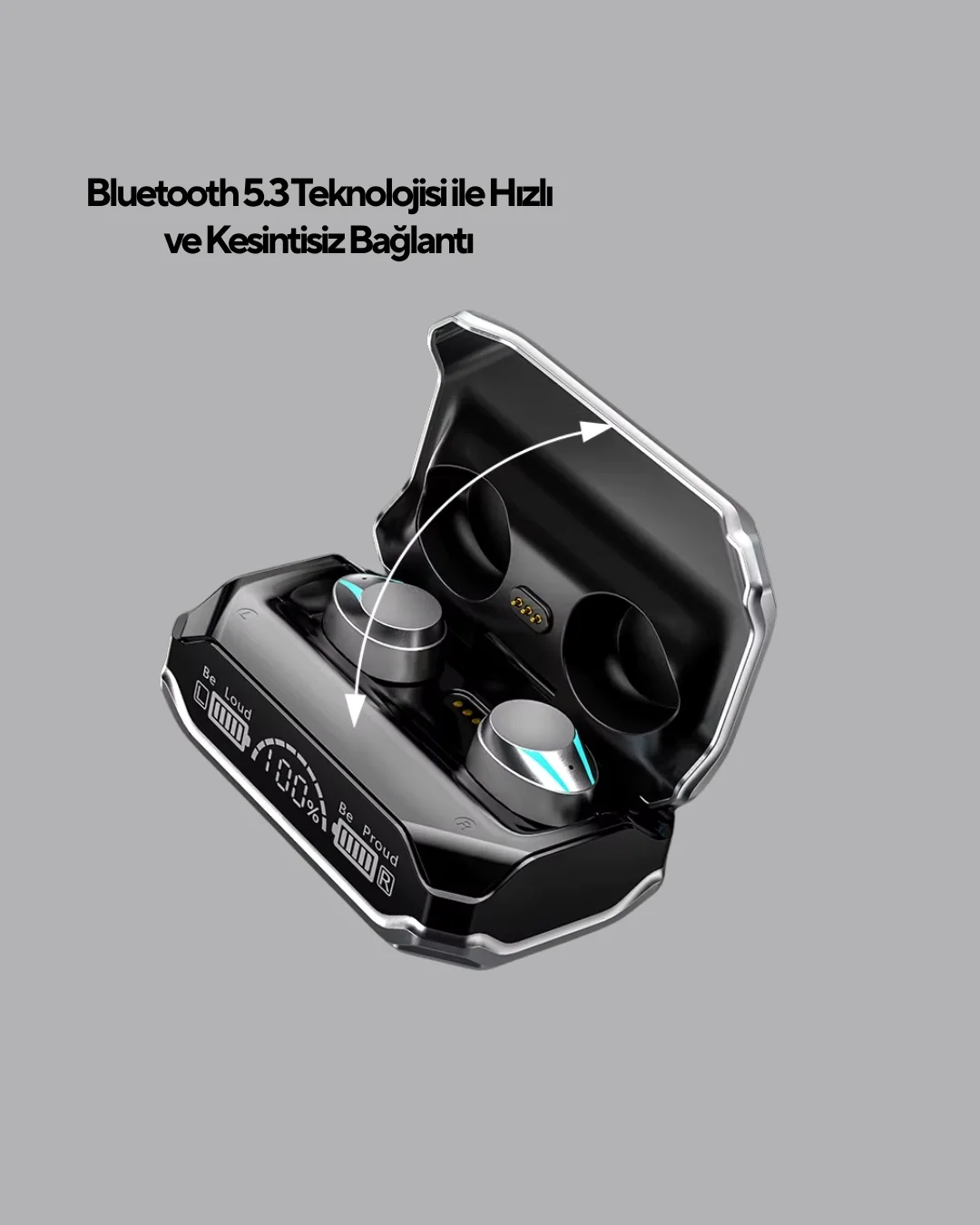 Bluetooth 5.3 teknolojisi ile donatılmış bu kablosuz kulaklık, müzik dinleme, oyun oynama ve video izleme deneyimlerinizi bir üst seviyeye taşır. Yeni nesil Bluetooth 5.3, önceki sürümlere kıyasla daha geniş kapsama alanı, daha hızlı veri aktarımı ve düşük gecikme süresi sunar. Böylece sesin görüntüyle mükemmel senkronizasyonu sağlanır, kesintisiz bir deneyim yaşarsınız.Anında bağlantı özelliği sayesinde cihazınızı açar açmaz otomatik olarak eşleşir. Telefonlar, tabletler, bilgisayarlar ve oyun konsolları dahil tüm Bluetooth destekli cihazlarla uyumludur. Bu sayede kablo karmaşasından kurtulup, dilediğiniz yerde özgürce müzik dinleyebilirsiniz.Güçlü ses sürücüleri, derin baslar ve net tizler sunarak müzikleri canlı bir şekilde hissetmenizi sağlar. Oyunlarda gecikmesiz ses aktarımı sayesinde her adımı, her detayı net bir şekilde duyabilir, rekabet avantajı elde edersiniz.Uzun pil ömrü, gün boyu kesintisiz kullanım imkânı sunar. Şık ve ergonomik tasarımı, kulağa tam oturur ve uzun süreli kullanımlarda bile konfor sağlar. Bluetooth 5.3 kablosuz kulaklık, hız, kalite ve modern tasarımı bir araya getirerek günlük yaşamda vazgeçilmez bir aksesuar haline gelir.