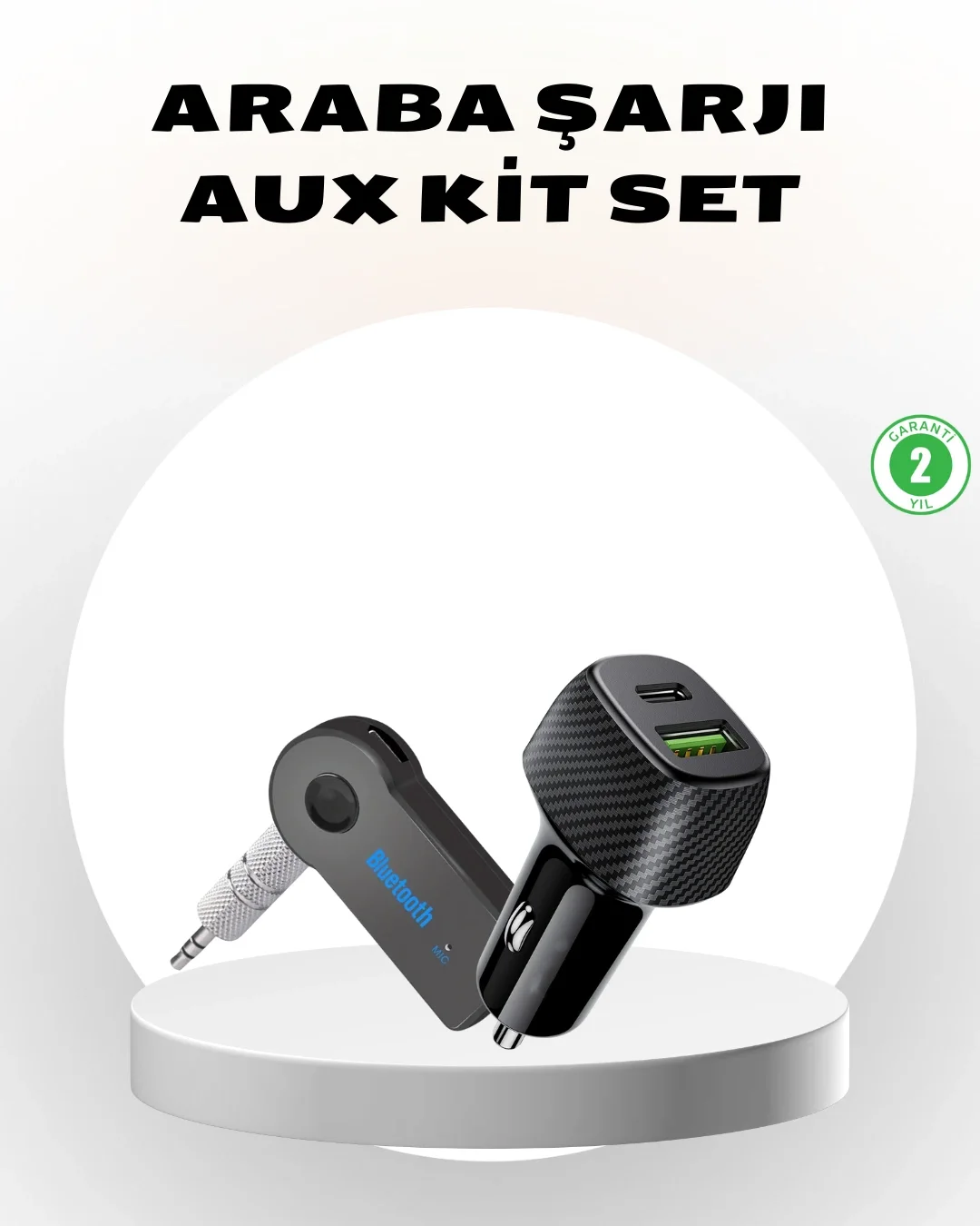 Bu 2’li araç seti, aracında hem kablosuz müzik keyfi hem de hızlı şarj imkânı isteyen kullanıcılar için ideal bir çözümdür. Bluetooth AUX çevirici kiti sayesinde aux girişi bulunan tüm araç teyplerini ve hoparlör sistemlerini Bluetooth özellikli hale getirebilirsiniz. Akıllı telefon, tablet ve MP3 çalarlar ile kablosuz bağlantı kurarak müzik dinleyebilir, araç içinde eller serbest telefon görüşmeleri yapabilirsiniz.Setin ikinci ürünü olan 38W / 3 amper gücündeki araç şarj cihazı, 1 adet Type-C (PD destekli) ve 1 adet USB çıkışı sayesinde aynı anda iki cihazı hızlı ve güvenli şekilde şarj etmenizi sağlar. Günlük kullanım ve uzun yolculuklar için pratik bir araç aksesuar setidir.