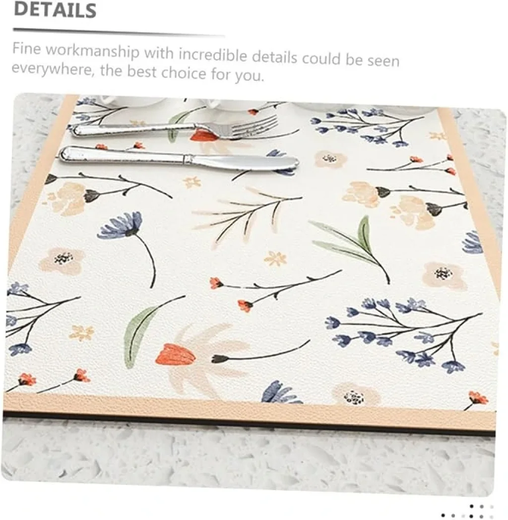 ÇİÇEKLİ KAYMAZ SERVİS MATIMasalarınıza Baharın Tazeliğini TaşıyınÇiçekli Servis Matı, 40x30 cm ölçülerinde ve sadece 0,25 cm inceliğinde, hem zarif hem de işlevsel bir dokunuş sunar. Kaymaz tabanıyla güvenli bir kullanım deneyimi sağlayan bu mat, yüksek kaliteli PVC, diatom sızıntısı, sünger ve kauçuk gibi dayanıklı malzemelerden üretilmiştir. Modern tasarımı, mutfak ve yemek masalarınıza stil katarak dekorasyonunuzu aydınlatır. İnce işçiliği sayesinde uzun süreli kullanım için sağlam ve dayanıklıdır.Kompakt boyutuyla saklaması ve temizlemesi son derece kolay olan bu servis altlığı, mutfağınızda pratik bir yardımcıdır. Zarif çiçek desenleriyle sofralarınıza baharın tazeliğini getirirken, her yemeği keyifli bir deneyime dönüştürür. Bu yıkanabilir ve yeniden kullanılabilir mat, hem şıklığı hem de işlevselliğiyle evinizin vazgeçilmezi olmaya aday. Bu özel servis matıyla, hem masalarınızı koruyun hem de dekorasyonunuza zarif bir dokunuş ekleyin.
