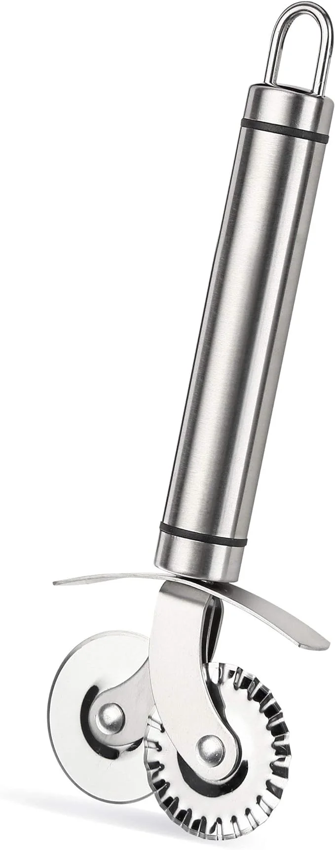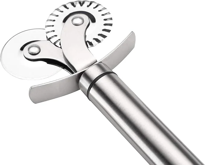 ÇİFT BAŞLIKLI PİZZA HAMUR BIÇAĞIÇift başlıklı pizza ve hamur bıçağı, mutfakta pratik kesim sağlayan özel bir tasarıma sahiptir. Paslanmaz çelik malzemesi, uzun ömürlü kullanım ve keskin bir performans sunar. İki farklı bıçak başlığı, pizza dilimleme ve hamur kesimini kolaylaştırarak çok yönlü bir kullanım sağlar.Duvara asılabilir tasarımı, mutfak düzeninizi korumanızı sağlar ve bıçağın kolay erişilebilir olmasını sağlar. Bıçağın her iki ucu da kesici özelliklere sahiptir, böylece farklı kesim ihtiyaçlarına uyum sağlar.Dayanıklı ve sağlam yapısıyla bu çift başlıklı pizza ve hamur bıçağı, mutfakta pratiklik ve işlevselliği bir araya getirir. Keskin kenarları ve paslanmaz çelik malzemesiyle uzun süreli kullanım için ideal bir mutfak aracıdır.Paket İçeriği1 adet çift başlıklı pizza hamur bıçağı