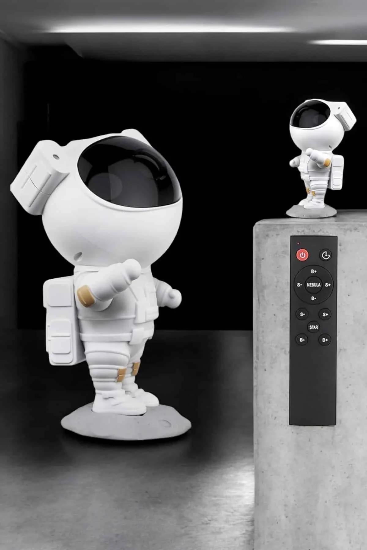 Hayal gücünüzü harekete geçiren Astronot Projeksiyon Lambası, benzersiz bir yıldız ve nebula deneyimi sunuyor. Telefonunuzla kolayca eşleşen Bluetooth özelliği sayesinde müzik dinleyebilir veya cihazın içerisinde yer alan kuş cıvıltıları, dalga sesleri, şömine ateşi ve uyku müzikleriyle rahatlatıcı bir atmosfer yaratabilirsiniz. 120x113x228 mm boyutları ve 655g ağırlığıyla kompakt ve hafif bir tasarıma sahip olan bu lamba, her odaya uyum sağlar.Nebula ve yıldız projeksiyonu aynı anda veya ayrı ayrı kullanılabilir. Hız ve parlaklık ayarları ile manzarayı tam olarak istediğiniz gibi özelleştirebilirsiniz. 45 dakika ve 90 dakika olmak üzere iki zamanlama modu bulunan cihaz, uyku öncesi kullanımlar için idealdir. Dekorasyon olarak da kullanılabilen lamba, şık ve modern bir görünüm sunar. Paket içeriğinde astronot projeksiyon lambası, taban, USB güç kablosu ve uzaktan kumanda bulunmaktadır (pil dahil değildir).