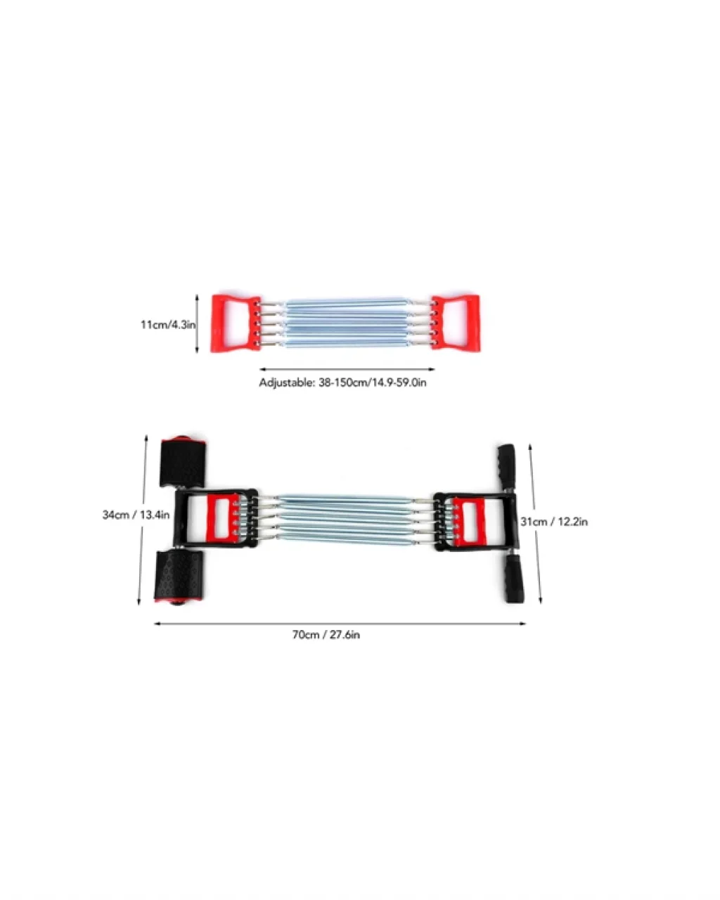 Bu 3’ü 1 arada spor aleti, kol ve göğüs kaslarınızı genişletmek, mekik çekmek ve el kaslarınızı güçlendirmek için tasarlanmıştır. İçerisinde bulunan 5 adet elastik paslanmaz çelik yay, farklı direnç seviyeleriyle kişiselleştirilebilir egzersizler yapmanıza olanak tanır. Yaylar kolayca çıkarılıp takılabilir, ancak en az üç yay kullanılması tavsiye edilir. Her yay maksimum 15 kilogram ağırlık taşıma kapasitesine sahiptir, böylece direnç seviyenizi ihtiyacınıza göre ayarlayabilirsiniz.Ergonomik tutma yerleri sayesinde elleriniz egzersiz sırasında rahat eder ve kayma riski minimuma iner. Mekik çubukları üzerindeki pedallar, denge ve stabilite sağlayarak doğru formda antrenman yapmanızı destekler. Bu spor aleti, kollarınızı, omuzlarınızı, sırtınızı, bacaklarınızı, karın ve bel kaslarınızı aynı anda çalıştırmanızı sağlar.Kompakt ve dayanıklı yapısı, evde veya seyahatte rahatlıkla kullanılmasına imkan verir. Her seviyeden kullanıcı için uygundur ve tüm aile bireylerinin kullanımına uygun esnek direnç ayarları içerir. Düzenli kullanımda, vücut gücünüzde ve dayanıklılığınızda gözle görülür artışlar yaşarsınız.