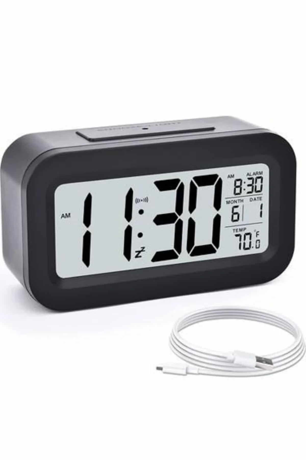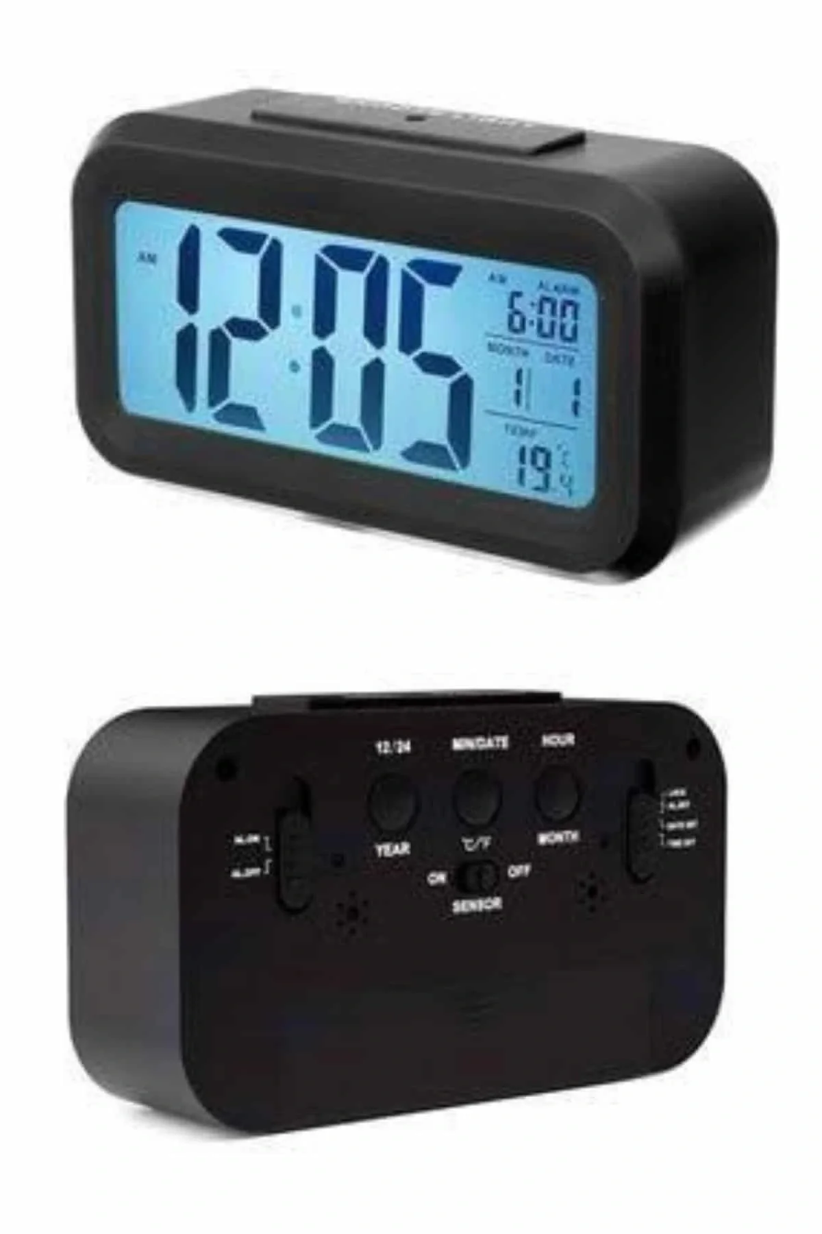 Modern tasarımı ve işlevsel özellikleriyle öne çıkan bu sensörlü dijital masa saati, büyük ekranıyla zamanı net bir şekilde görmenizi sağlar. Günlük kullanımda kolaylık sunan bu saat, özellikle karanlık ortamlarda da rahatça okunabilir yapısıyla dikkat çeker. Ekranını kendi ışığıyla aydınlatabilen sistem, dilediğinizde ışığı manuel olarak yakmanıza olanak tanır. Bu aydınlatma özelliği, aktif hale getirildikten sonra 6 saniye içerisinde otomatik olarak kapanarak hem enerji tasarrufu sağlar hem de geceleri rahatsız edici bir ışık yaymaz.Sadece saat göstermekle kalmayıp alarm fonksiyonuyla da sabahları zamanında uyanmanıza yardımcı olur. Ayrıca tarih ve ortam sıcaklığı göstergeleri sayesinde çok yönlü kullanım imkanı sunar. Kompakt yapısıyla masa üstünde fazla yer kaplamadan şık bir görünüm sağlar ve her ortamla uyum içinde kullanılır.Ürün ölçüleri 4,3 x 15,1 x 7,7 cm olup, 3 adet AA pil ile çalışır (piller pakete dahil değildir). Paket içeriğinde bir adet fotoselli dijital masa saati yer almaktadır. Hem ev hem ofis kullanımına uygun bu saat, fonksiyonel özellikleri ve pratik yapısıyla günlük yaşamınıza konfor katmak için ideal bir seçenektir.