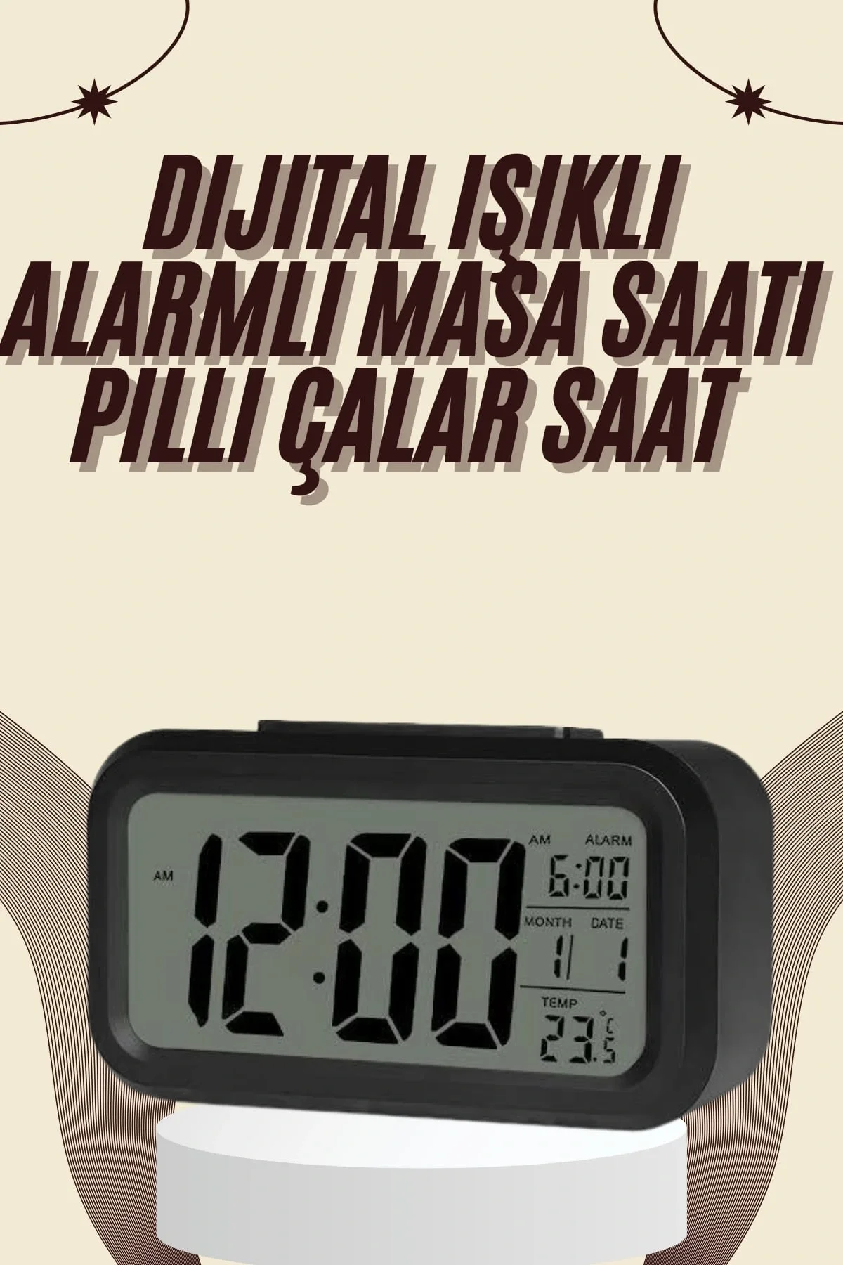 Şık ve kullanışlı tasarımıyla öne çıkan bu dijital masa saati, modern yaşam alanları için hem dekoratif hem de işlevsel bir çözüm sunar. Geniş dijital ekranı sayesinde saati, tarihi ve ortam sıcaklığını kolaylıkla görebilir; özellikle düşük ışıklı ortamlarda dahi ekranı net bir şekilde takip edebilirsiniz. Otomatik ışık sensörü sayesinde karanlıkta ekran kendiliğinden aydınlanır ve bu özellik gerektiğinde manuel olarak da aktive edilebilir. Aydınlatma sistemi, kısa süreli yanarak gereksiz enerji tüketiminin önüne geçer ve göz yormayan bir kullanım sağlar.Alarmlı yapısıyla sabahları zamanında uyanmanıza yardımcı olan bu saat, aynı zamanda tarih ve derece göstergeleriyle de gün boyu ihtiyacınız olan temel bilgileri sunar. Kompakt ölçüleri sayesinde çalışma masanızda, baş ucunuzda ya da ofis ortamında rahatlıkla yer bulabilir. Ayrıca sessiz çalışmasıyla gece boyunca rahatsızlık vermez.Ürün 4,3 x 15,1 x 7,7 cm boyutlarındadır ve 3 adet AA pil ile çalışır (piller dahil değildir). Kutusunda 1 adet fotoselli dijital masa saati bulunmaktadır. Pratikliği ve modern görünümüyle hem ev hem ofis kullanımı için ideal bir yardımcıdır.