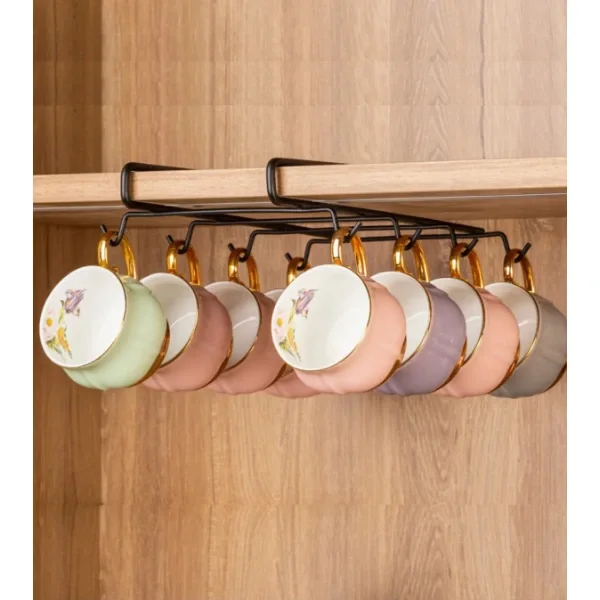 DOLAP İÇİ FİNCANLIK ASKIÜrün ÖzellikleriDolap içi fincanlık askı, mutfak düzeninizi pratik ve estetik şekilde organize etmenize yardımcı olur. 10 adet kancası sayesinde fincanlarınızı güvenli şekilde asabilir, dolap altı veya raf gibi yüzeylere kolayca takarak yer tasarrufu sağlayabilirsiniz. Metal malzemeden üretilmiş olan bu askılık, sağlam yapısı ile uzun ömürlü kullanım sunar. Dolap veya raf altına delme işlemi yapmadan kolayca monte edilir ve mutfaklarınıza şıklık katar. Tüm standart boyutlardaki kulplu fincanlarla uyumludur.Paket İçeriği1 Adet Dolap İçi Fincanlık Askı
