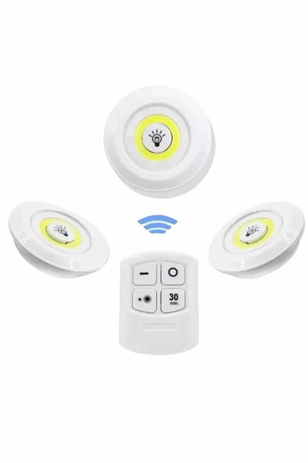 Kumandalı Spot LED Lamba Seti | Ayarlanabilir Işık Şiddeti ve Zamanlayıcı Özellikli – 3'lü PaketYaşam alanlarınıza pratiklik ve şıklık kazandıran bu kumandalı spot LED lamba seti, özellikle banyo ve mutfak gibi aydınlatmaya ihtiyaç duyulan alanlarda konforlu kullanım sunar. Kompakt tasarımı ve kablosuz yapısıyla evinizin her köşesinde kolayca monte edilebilir; ister dolap içlerinde, ister raf altlarında, isterse koridor gibi az ışık alan bölgelerde etkili bir çözüm sağlar.Her biri x3W COB LED teknolojisiyle donatılmış olan spot lambalar, güçlü ve homojen bir aydınlatma sunarken enerji tasarrufunu da ön planda tutar. Ürün, 3 adet AAA pil ile çalışır (piller pakete dahil değildir) ve tamamen kablosuz yapısıyla priz gereksinimini ortadan kaldırır. Bu sayede istediğiniz her alanda özgürce konumlandırabilirsiniz.Ürünün birlikte gelen akıllı kumandası, ışık şiddetini ayarlama, spotları belirli bir mesafeden açıp kapama ve 30 dakikalık zamanlayıcı kurma gibi işlevsel özellikler sunar. Dilerseniz spotların üzerindeki dokunmatik tuşlar ile manuel kontrol de sağlayabilirsiniz. Kumandanın duvara sabitlenebileceği özel haznesi sayesinde her zaman elinizin altında olmasını sağlayabilir, kaybolmasının önüne geçebilirsiniz.Çift taraflı yapışkan bantları sayesinde delme ya da vidalama işlemi gerektirmez; düz yüzeylere kolayca monte edilir ve istenildiğinde iz bırakmadan çıkarılabilir. Hem estetik hem de fonksiyonel bu LED spot seti, ortam aydınlatmasını kişiselleştirmek isteyenler için mükemmel bir tercihtir.