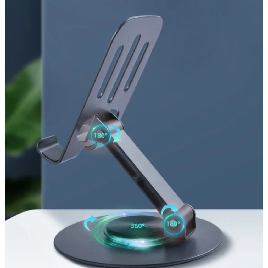 DÖNEBİLİR VE KATLANABİLİR MASAÜSTÜ METAL TELEFON TUTUCUÜrün ÖzellikleriDönebilir ve katlanabilir masaüstü metal telefon tutucu, sağlam alüminyum alaşımlı yapısı ile uzun süreli kullanım sağlar. 360 derece dönebilir tabanı ve ayarlanabilir açılı tasarımı sayesinde telefonunuzu hem yatay hem dikey konumda sabitleyebilir, film izlerken, görüntülü görüşme yaparken veya çalışırken rahatlıkla kullanabilirsiniz. Kaymaz silikon pedleri cihazınızı çizilmelere karşı korurken, taban kısmındaki denge sağlayıcı yüzey devrilmeyi önler. Katlanabilir yapısı sayesinde kolayca çantanıza sığar ve taşınabilirlik sunar. Modern ve şık tasarımıyla ofis, ev veya seyahatlerde kullanım için idealdir.Paket İçeriği1 adet Dönebilir ve Katlanabilir Masaüstü Metal Telefon Tutucu