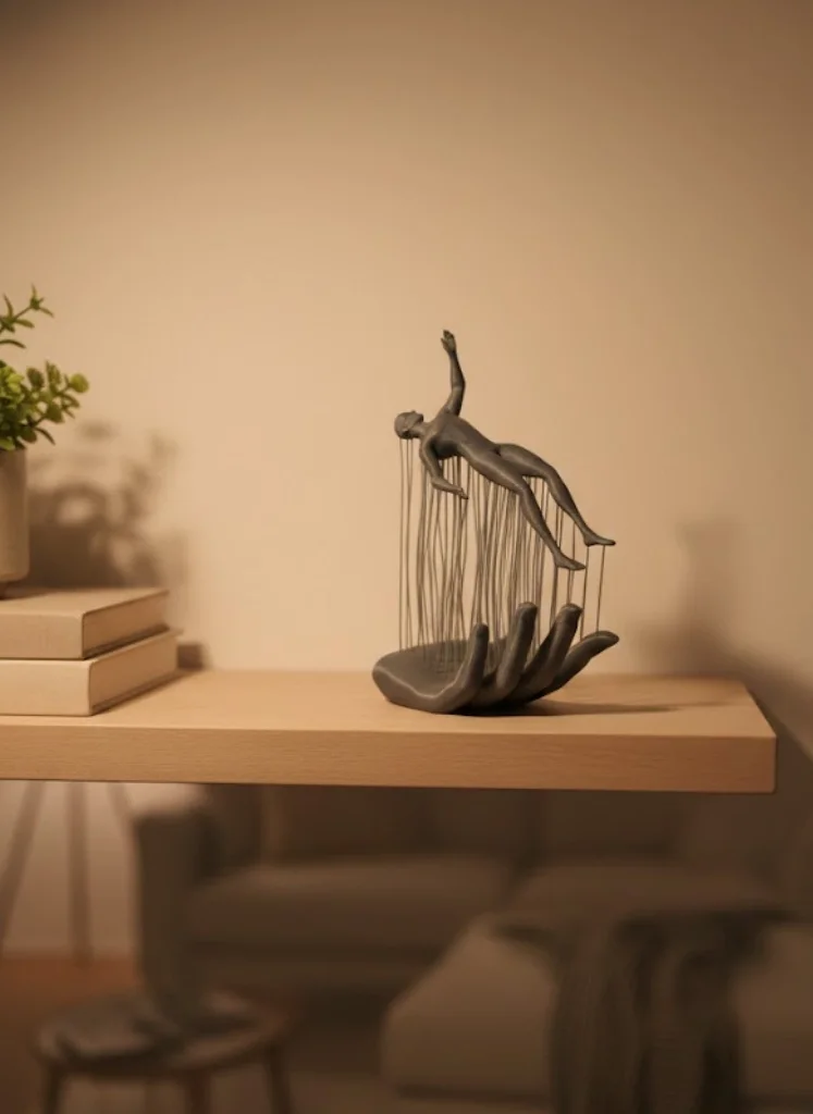 El İnsan Figürü Gri, modern ve sanatsal formu ile yaşam alanlarınıza estetik bir dokunuş kazandırır. El formu üzerinde yükselen insan figürü, soyut ve anlam yüklü tasarımıyla dikkat çeker. Salon raflarında, kitaplık üzerinde ya da konsol dekorasyonunda kullanıma uygundur. Gri rengi sayesinde hem açık hem koyu dekorasyon stilleriyle kolayca uyum sağlar. Minimal ve modern ev dekorasyonu sevenler için ideal bir biblodur.