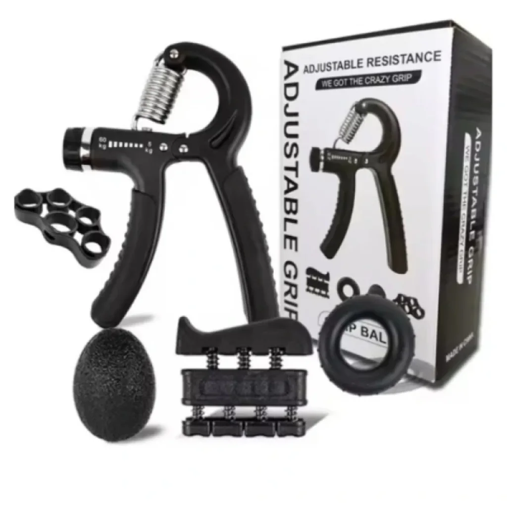 EL VE PARMAK GÜÇLENDİRİCİ EGZERSİZ SETİÜrün ÖzellikleriEl ve parmak güçlendirici egzersiz seti, kavrama gücünü artırmak, el ve parmak kaslarını geliştirmek ve rehabilitasyon sürecini desteklemek için tasarlanmış çok fonksiyonlu bir settir. Setin içerisinde ayarlanabilir dirençli el yayı yer alır, bu yayı 5 kg ile 60 kg arasında ayarlanabilir direnç seviyesiyle el kaslarını etkili şekilde çalıştırır. Parmak genişletici lastik, parmak kaslarını çalıştırarak kas dengesini sağlar ve tersi yönde kuvvet geliştirmek için idealdir. Stres topu (egzersiz yumurtası) ise avuç içi kavrama gücünü artırmakla kalmaz, aynı zamanda stres azaltma amacıyla da kullanılabilir. Parmak egzersiz cihazı, her parmak için ayrı yay sistemine sahiptir ve özellikle müzisyenler, tırmanışçılar ve fizik tedaviye ihtiyaç duyan bireyler için uygundur. Kavrama halkası ise basit ve etkili bir direnç sunar, kolay taşınabilir yapısıyla her ortamda kullanılabilir. Sporcular, müzisyenler, masa başı çalışanlar veya stres yönetimine ihtiyaç duyan herkes için ideal bir çözümdür. Ofiste, evde ya da antrenman öncesi-sonrası kullanıma uygundur.Paket İçeriği1 Adet El Ve Parmak Güçlendirici Egzersiz Seti