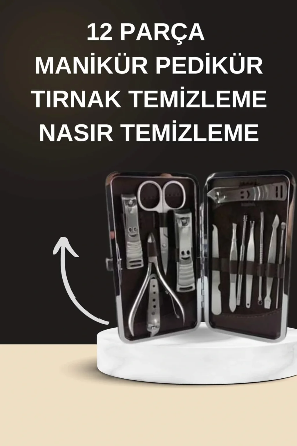 Elektrikli Manikür Pedikür Seti İkili Set 12 Parça Tırnak Bakımı Törpü Protez Çıkarma