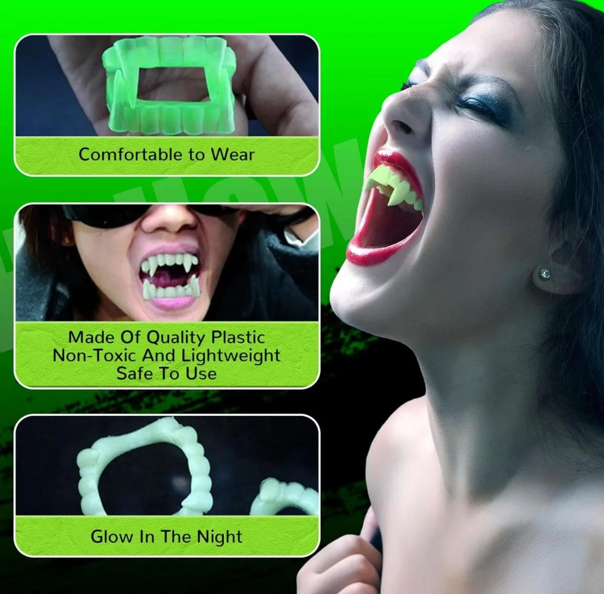 ChatGPT:FOSFORLU ÇİFT DAMAK TAKMA VAMPİR DİŞİÜrün ÖzellikleriFosforlu çift damak takma vampir dişi, karanlık ortamlarda ışıldayan yapısıyla dikkat çekici bir görünüm sunar. Cadılar bayramı, kostüm partileri, temalı etkinlikler ve sahne performansları için ideal olan bu ürün, doğal görünümlü keskin diş detayları sayesinde korkutucu bir etki yaratır. Esnek ve hafif malzemesi sayesinde ağızda rahatlıkla kullanılabilir ve uzun süreli kullanımlarda rahatsızlık vermez.Gece karanlığında fosforlu özelliğiyle ekstra etkileyici bir görünüm sağlayan bu vampir dişi, hem yetişkinler hem de gençler için eğlenceli bir kostüm tamamlayıcısıdır. Fotoğraf çekimleri ve sahne performanslarında da estetik bir etki yaratır.Paket İçeriği1 adet Fosforlu Çift Damak Takma Vampir Dişi1 adetx
