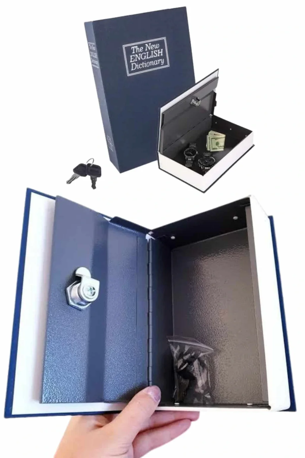 Kitaplıkta sıradan bir sözlük gibi görünen ancak içerisinde yüksek güvenlik sunan bu lacivert renkli Sözlük Görünümlü Kitap Kasa, değerli eşyalarınızı gizli ve güvenli bir şekilde saklamanızı sağlar. İngilizce sözlük tasarımı sayesinde gerçek bir kitaptan ayırt edilmesi neredeyse imkânsız olan bu ürün, özellikle davetsiz misafirlerin en son bakacağı yer olan kitaplık gibi alanlarda ideal bir kamuflaj sunar. Kitabın kapağı karton cilt yapısıyla orijinal kitap görünümüne sahipken, iç kısmında yer alan metal kasa 1 mm kalınlığında sağlam yapısıyla koruma sağlar. Bu detay, hem gizlilik hem de fiziksel güvenlik açısından kullanıcıya maksimum fayda sunar.Ürünle birlikte gelen iki adet anahtar sayesinde yalnızca siz erişim sağlayabilir, başka bir anahtarla açılması mümkün olmayan benzersiz kilit sistemi ile ekstra güvenlik elde edersiniz. Her kitap kasa kendi özel kilit mekanizmasına sahip olduğu için, anahtarlar birbirinin yerine geçmez. Böylece ofisinizde ya da evinizde birden fazla kitap kasa bulundursanız bile güvenlik riski oluşmaz. Takılarınızı, yedek anahtarlarınızı, nakit paralarınızı, dijital depolama aygıtlarınızı veya önemli belgelerinizi bu gizli kasaya gönül rahatlığıyla koyabilirsiniz.Kompakt yapısı sayesinde her yere kolaylıkla yerleştirilebilen bu ürün 18 cm uzunluğa, 11.5 cm genişliğe ve 5.5 cm derinliğe sahiptir. Bu ölçüler, hem taşınabilirlik açısından avantaj sunar hem de içerisine birçok farklı türde değerli eşya sığdırmanıza olanak tanır. Ofiste masa üzerinde veya kitaplıkta, evde ise oturma odasında ya da yatak odasında kullanılabilir. Ürün, pratikliği ve fonksiyonelliği ile hem bireysel kullanıcılar hem de hediye arayışında olanlar için mükemmel bir tercihtir. Dışarıdan tamamen kitap gibi görünen bu güvenli kasa ile değerli eşyalarınızı korumak artık çok daha estetik, akıllıca ve huzurlu.