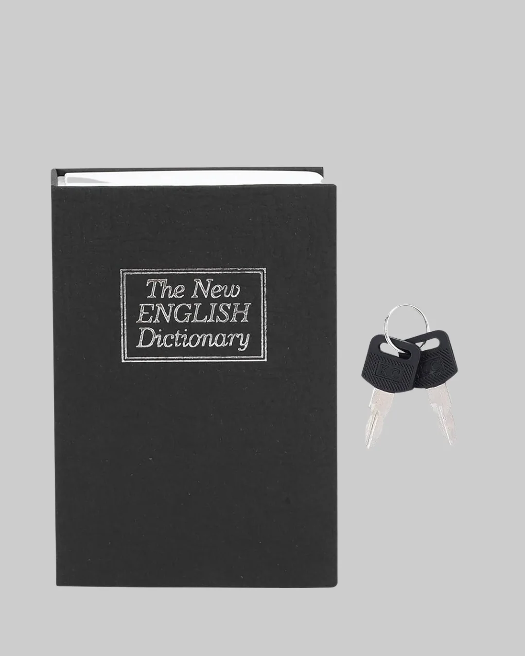 Değerli eşyalarınızı güvenle saklamak hiç bu kadar pratik olmamıştı! Bu gizli kitap kasa, klasik bir İngilizce sözlük görünümüyle dikkat çekmeden eşyalarınızı koruma altına almanızı sağlar. Gerçek bir kitap gibi görünen dış cildi sayesinde dolapta, kitaplıkta veya ofis rafında fark edilmeden saklanabilir.Dış kısmı sert karton ve kaplamalı cilt malzemeden, iç kısmı ise dayanıklı metal kasadan üretilmiştir. Bu sayede dışarıdan sıradan bir kitap gibi görünürken, içte maksimum güvenlik sağlar.Kilitli iç kasa, iki adet anahtar ile birlikte gelir; sadece sizin erişiminiz mümkündür. Takılar, nakit para, pasaport, evrak, özel belgeler veya hatıra eşyalarınızı güvenle saklamak için mükemmel bir çözüm sunar.Kompakt boyutları (18,5 x 11,5 x 5,6 cm) sayesinde kitaplığınızda rahatlıkla kamufle olur. Hafif ve taşınabilir yapısı, seyahatlerde de kullanılmasını kolaylaştırır.Estetik görünümüyle hem ev hem ofis dekoruna uyum sağlar; sade tasarımı sayesinde hiçbir şekilde dikkat çekmez.Güvenliği, gizliliği ve şıklığı bir arada sunan bu gizli kitap kasa, hem pratik hem ekonomik bir güvenlik çözümüdür.Değer verdiğiniz eşyalarınızı saklarken kimsenin fark etmeyeceği kadar zarif bir koruma sağlar!