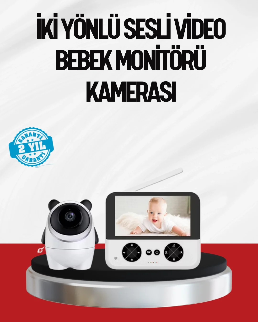 Görüntülü bebek monitörü, yüksek çözünürlüklü kamera ve geniş ekranı ile ebeveynlere güvenli bir izleme deneyimi sunar. 720P görüntü kalitesi sayesinde bebeğinizin yüz ifadelerini ve hareketlerini net bir şekilde görebilirsiniz. Geniş ekran tasarımı, uzun süreli kullanımlarda göz yormayan bir deneyim sağlar.Gece görüş özelliği, karanlık ortamlarda bile kesintisiz izleme imkânı sunar. Ağlama algılama fonksiyonu, bebeğinizin ihtiyaçlarına hızlı şekilde yanıt vermenize yardımcı olur. Uzaktan kamera kontrolü ile odanın farklı noktalarını rahatlıkla görüntüleyebilirsiniz.İki yönlü sesli iletişim sayesinde bebeğinizle konuşabilir, kendinizi yanında hissetmesini sağlayabilirsiniz. Ninni özelliği, bebeğin daha huzurlu uyumasına destek olur. Sıcaklık sensörü, ortam koşullarını takip ederek bebeğiniz için konforlu bir alan oluşturmanıza yardımcı olur.4x zoom, alarm ve saat fonksiyonları günlük ebeveyn rutinlerini kolaylaştırır. Kablosuz bağlantı yapısı sayesinde evin farklı odalarından rahatlıkla izleme yapılabilir.Bu bebek kamerası, güvenlik, konfor ve pratikliği bir arada arayan ebeveynler için ideal bir üründür.
