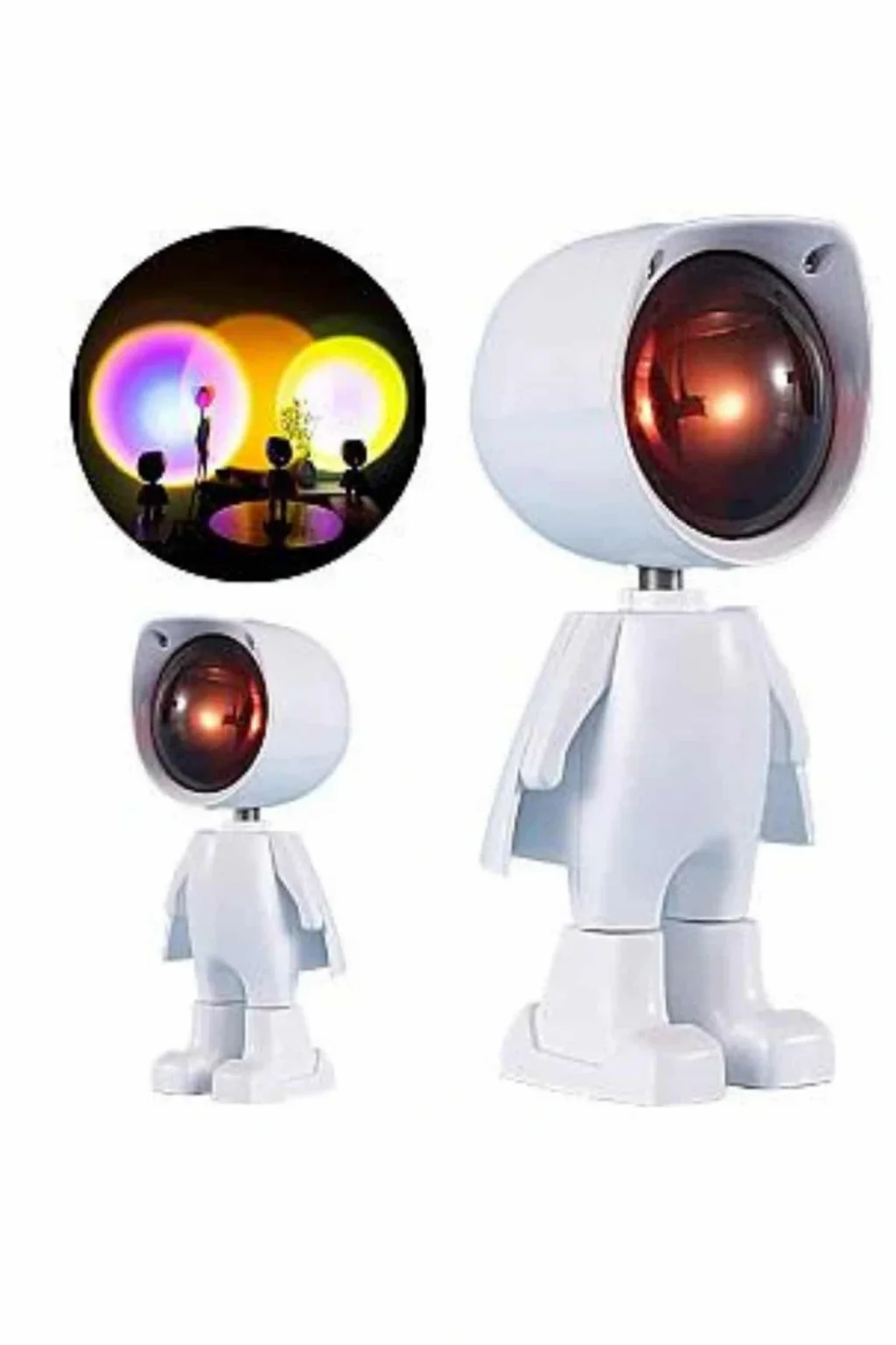 Bu sevimli astronot temalı gün batımı projektör lambası, hem dekoratif hem de fonksiyonel bir aydınlatma çözümü sunar. Gündelik kullanımda modern ve eğlenceli tasarımıyla bulunduğu ortama estetik bir hava katarken, aktif kullanıldığında ise yumuşak ve sıcak tonlardaki gün batımı efektli ışığıyla rahatlatıcı bir atmosfer oluşturur. USB ile şarj edilebilen bu ürün, taşınabilir yapısı sayesinde ev dışında da kolaylıkla kullanılabilir.5 Watt gücündeki LED ışık kaynağı, enerji verimliliğini yüksek seviyede tutarken uzun süreli kullanım olanağı sunar. Lamba kafasının 360 derece yatay ve 60 derece dikey dönebilen yapısı, ışığın yönünü dilediğiniz gibi ayarlayabilmenizi sağlar. Bu sayede ışığı bir duvara, tavana veya direkt olarak belirli bir alana yönlendirmek oldukça kolaydır.Dokunmatik kontrol paneli, kullanım deneyimini sade ve pratik hale getirir. Tek bir dokunuşla lambayı açıp kapatabilir, parlaklık seviyesini ihtiyacınıza göre ayarlayabilirsiniz. Işığın tonu ise özellikle gece saatlerinde göz yormadan huzur verici bir ortam yaratmak üzere tasarlanmıştır.Kompakt boyutları ve kablosuz kullanımı, bu lambayı yatak odasından oturma odasına, seyahatlerden açık hava etkinliklerine kadar her ortamda kullanışlı kılar. Kutu içerisinden çıkan USB kablosu ile şarj edilebilen cihaz, tam dolum sonrası 3-4 saat kesintisiz aydınlatma sunar.Gün batımı efektli ışık, özellikle fotoğraf ve video çekimlerinde estetik ve yaratıcı sonuçlar elde etmenizi sağlarken; gece lambası olarak da sıcak ve romantik bir ambiyans yaratır. Dinlenme, meditasyon veya özel anlarda size eşlik edecek bu lamba, hem kişisel kullanım hem de hediye alternatifi olarak ideal bir tercihtir.