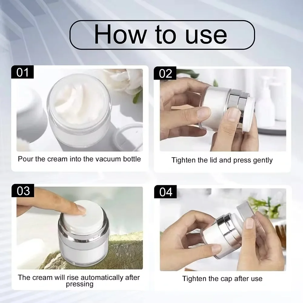 HAVA ALMAYAN LOSYON KAVANOZU 50 ML“Cilt Bakımında Devrim: Hava Almayan Krem Kutuları ile Tazelik ve Hijyen!”Krem ve losyonlarınızı güvenle saklayabileceğiniz havasız pompa krem kavanozlarımız, yüksek kaliteli akrilik malzemeden üretilmiştir ve cilt bakım ürünlerinizin etkili ve hijyenik bir şekilde kullanılmasını sağlar. Bu inovatif ürün, zararlı havayı ve yabancı maddeleri uzak tutarak ürünlerinizin tazeliğini korur.Ürün Özellikleri: • Yüksek Kaliteli Malzeme: Şeffaf akrilik asitten üretilmiş olup, aşınmaya dayanıklıdır ve kolayca zarar görmez. Cilt bakım ürünlerinin sızmasını önleyerek uzun ömürlü kullanım sağlar. • Havasız Pompa Teknolojisi: Vakum basınç pompası sistemi, ürünün raf ömrünü uzatmak için zararlı hava ve diğer yabancı maddeleri etkili bir şekilde izole eder. Bu sayede ürünleriniz her zaman temiz ve hijyenik kalır. • Geniş Kullanım Alanı: Bu vakumlu krem kavanozları, sadece sıvılar için değil, losyonlar, yüz kremleri, el kremleri, şampuan ve diğer kozmetik ürünler için de idealdir. Tekrar temizlendikten sonra birçok kez kullanılabilir.Kullanım Talimatları: 1. Kavanozun üst kısmını ürünle doldurun. 2. Havasız pompa sistemini aktif hale getirmek için birkaç kez basın. 3. Pompa basıldığında, kabın altındaki piston ürünü yukarı ve dışarı iter. 4. Basit ve kullanışlı tasarımı sayesinde manuel kazıma ihtiyacı olmadan temiz bir kullanım sağlar.Not: Pompa sisteminin etkin çalışabilmesi için kullanımdan önce fazla havayı çıkarmayı unutmayın.Bu havasız pompa krem kutusu ile cilt bakım ürünlerinizin kalitesini ve hijyenini koruyarak, seyahatlerinizde bile rahatlıkla kullanabilirsiniz. Hem çevre dostu hem de kullanıcı dostu olan bu ürün, güzellik rutininizi bir üst seviyeye taşıyacak!