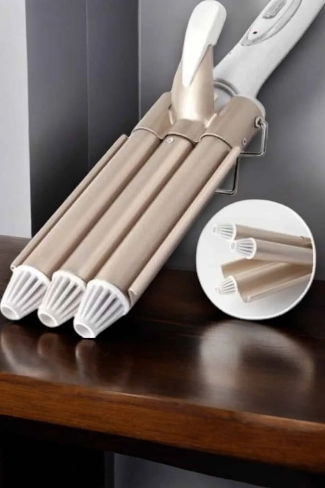Saç maşası, tüm gün kalıcı bukleler için özel olarak tasarlanmıştır. 25 mm çapındaki üç namlulu seramik kaplama, saçlarınızı yıpratmadan şekillendirir ve sağlıklı bir görünüm kazandırır. PTC ısıtma sistemiyle donatılmış cihaz, yalnızca 30 saniyede ısınarak yoğun tempolu günlerde bile kolayca kullanıma hazır hale gelir. 170°C ve 220°C arasında değişen ayarlanabilir sıcaklık seviyeleri, ince ve kalın telli saçlar için ideal ısıyı seçmenize olanak tanır. Ergonomik tutamaç, haşlanma önleyici tasarımı ve ısı yalıtımlı braketi sayesinde güvenli bir kullanım sunar. Altın rengi estetik tasarımı, cihazın şıklığını tamamlar ve onu günlük bakım rutininizin vazgeçilmez bir parçası haline getirir.