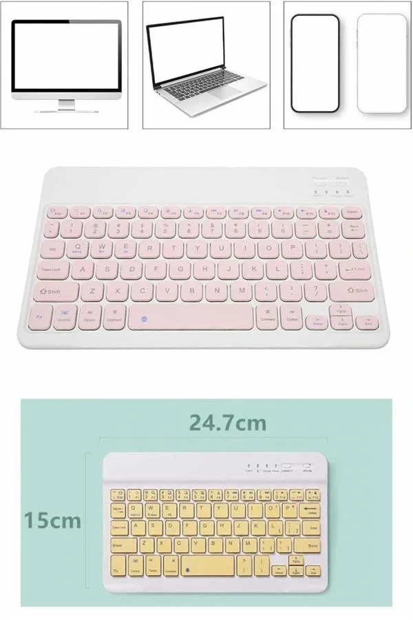 Minimalist ve ince yapısıyla öne çıkan bu Bluetooth klavye, hem estetik hem de fonksiyonelliği bir arada sunar. Türkçe Q düzeni sayesinde kullanıcıya alışık olduğu yazım konforunu sağlar, sessiz tuş yapısı ise çalışırken dikkat dağınıklığını minimuma indirir. Gelişmiş Bluetooth teknolojisi sayesinde tablet, telefon ve bilgisayarlarla kolayca eşleşir; kablosuz özgürlükle verimli bir çalışma ortamı oluşturur.Dayanıklı yapısı, uzun ömürlü bataryası ve ergonomik dizaynı ile ister evde ister ofiste sorunsuz kullanım vadeder. Multimedya kontrol tuşlarıyla müzik ve video geçişlerini anında yapabilir, işlerinizi bölmeden multimedya deneyiminizi sürdürebilirsiniz. Hafif ve taşınabilir olması, bu klavyeyi mobil çalışma alanları için vazgeçilmez kılar.