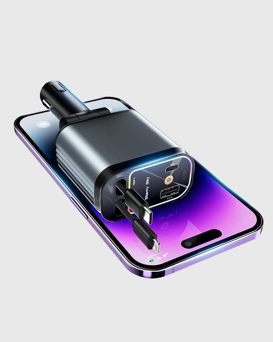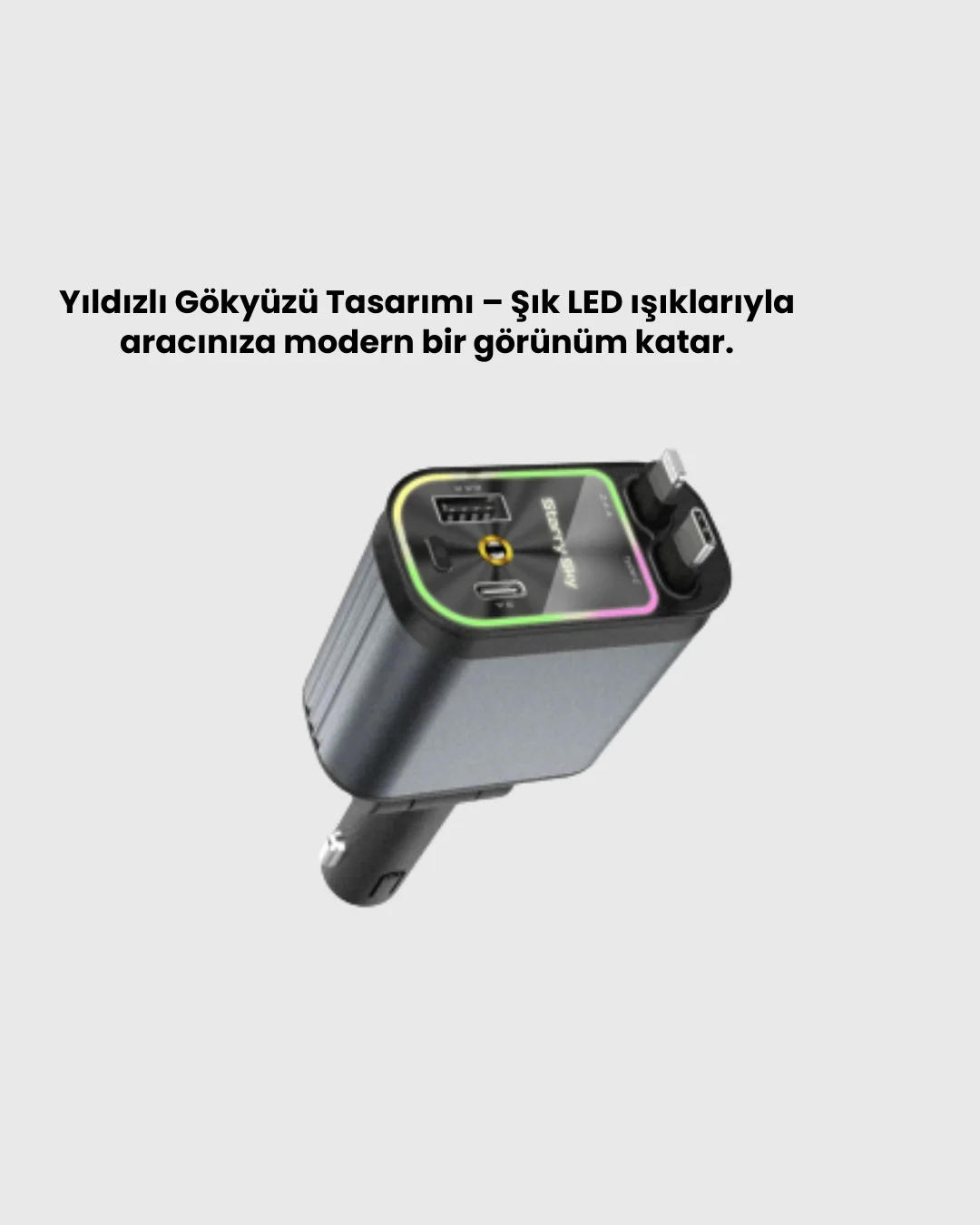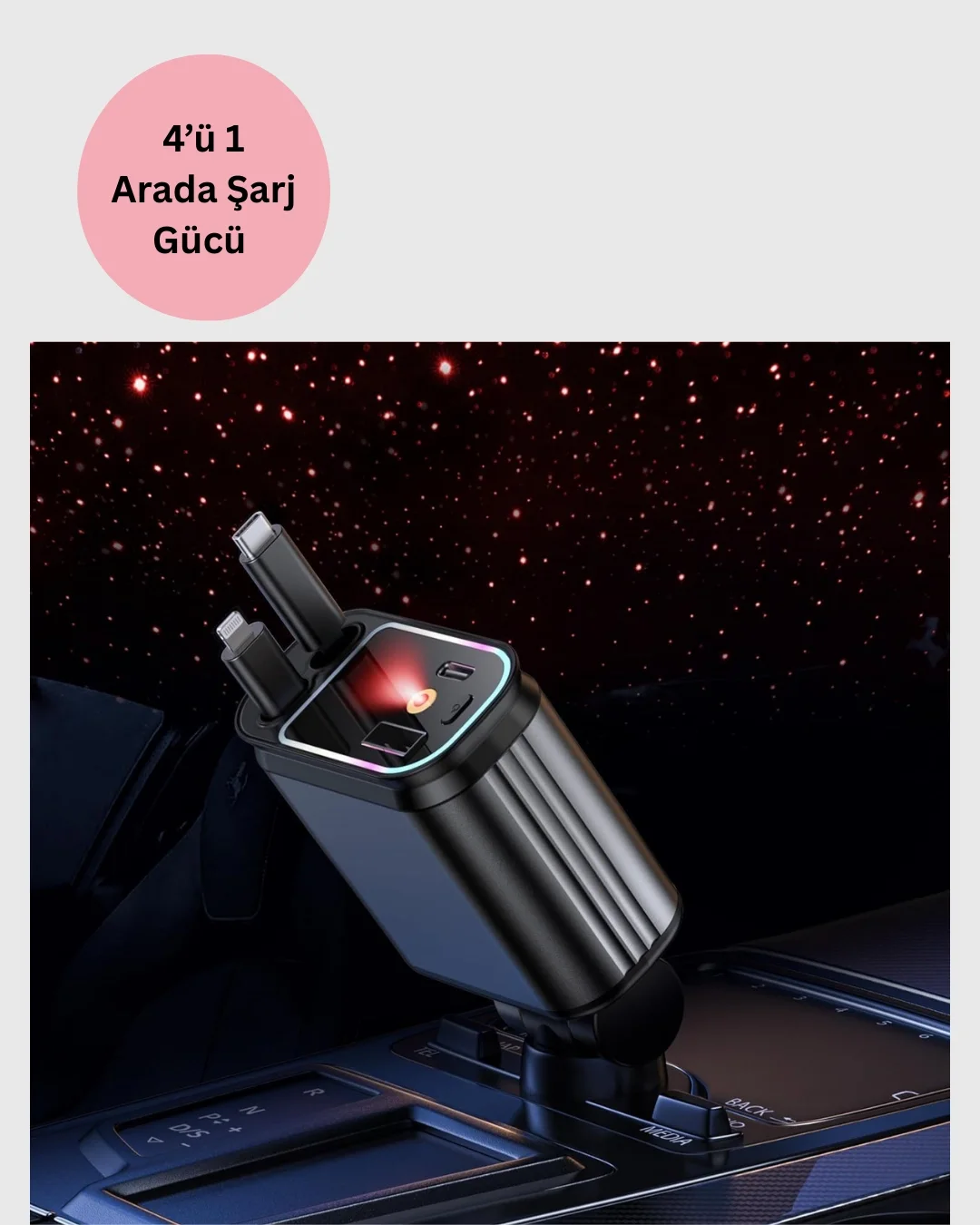 Jeep, Land Rover, Subaru ve Suzuki kullanıcıları için hazırlanan bu 4 portlu araç şarj cihazı, 66W gücüyle cihazlarınıza hızlı şarj imkânı tanır. PD ve QC teknolojileri sayesinde cihazlarınızı kısa sürede şarj ederken güvenliği de üst düzeyde sağlar.Kompakt tasarım ve çekilebilir kablo özelliği, aracınızda düzen sağlar. 180 derece dönebilen şarj başlığı, her açıdan kolay kullanım imkânı sunar. Aşırı voltaj, akım ve ısınmaya karşı koruma özelliği ile cihazlarınızı daima güvende tutar.LED ışık desteği, gece sürüşlerinize estetik bir hava katar ve aracınızda modern bir atmosfer oluşturur. Jeep, Land Rover, Subaru ve Suzuki araçlarda uyumlu olan bu cihaz, güvenlik, şıklık ve fonksiyonelliği bir arada sunar.