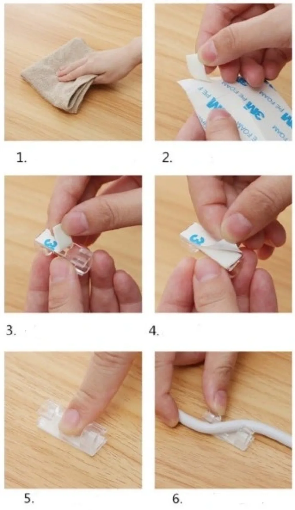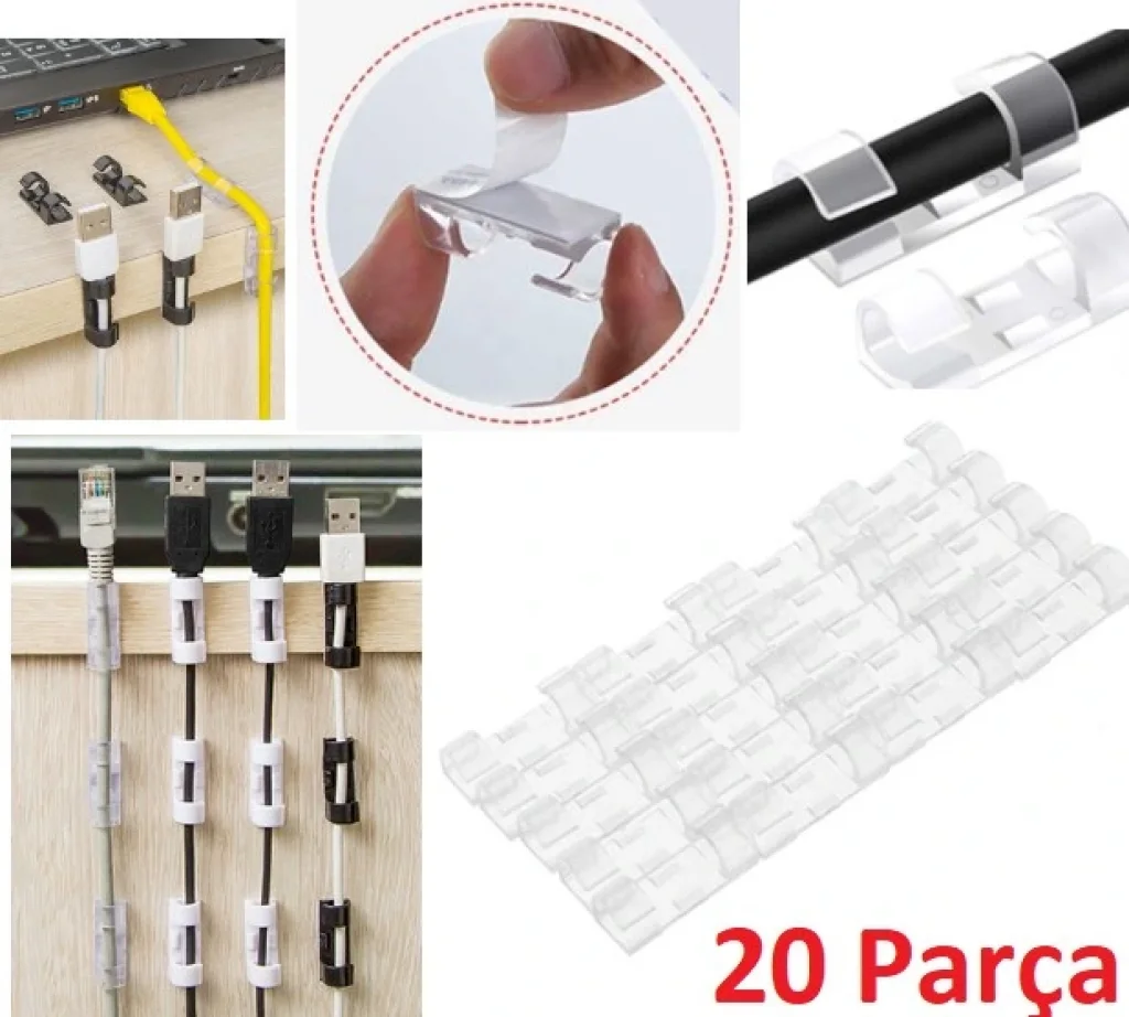 KABLO SABİTLEYİCİ KLİPS SETİ 20 ADET Montaj yüzeyinin temiz ve kir, toz, yağ ve balmumu içermediğinden emin olun.Yüzeyi silin ve yüzeyin tamamen kurumasına izin verin.Yapışkan bandın arkasını çıkarın ve kablo klipsine uygulayın.Kalan desteği çıkarın ve istenen yüzeye yapıştırın. Başparmağınızla kablo kelepçesi üzerindeki baskıyı uygulayın ve 10 saniye boyunca sıkın.Tutkal gerçekten yapılana kadar onlara birkaç dakika boyunca ağırlık koymayın. Kabloları klibe takın ve kilitleyin. Sık sık hareket etmekten kaçının.Paket İçeriği20 adet kablo sabitleyici klips seti