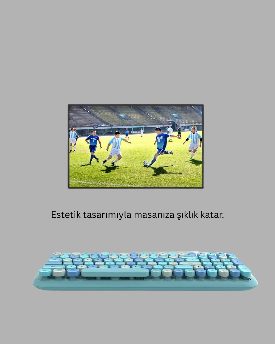 Retro stilde tasarlanan bu kablosuz klavye ve mouse seti, hem estetik hem de fonksiyonelliği bir araya getiriyor. 104 tuşlu tam boy klavye, yüksek tuş yapısı sayesinde mekanik hissiyat verirken sessiz basışlarıyla konforlu bir deneyim sunar. FN kombinasyonlu multimedya tuşları, ses kontrolü ve medya yönetimini pratik hale getirir.Ergonomik 5 tuşlu mouse, uzun kullanımlarda rahatlık sağlar ve hızlı tepkime süresiyle öne çıkar. Tek bir USB alıcısı hem klavye hem fareyi aynı anda çalıştırır. Klavye kapağı çıkarılabilir, kolay temizlenir ve toza karşı dayanıklıdır. Ayarlanabilir braket, bilek desteği sağlar. XP, Win7, Win8, Win10 sistemleriyle uyumlu, sade ve zarif bir tasarıma sahiptir.