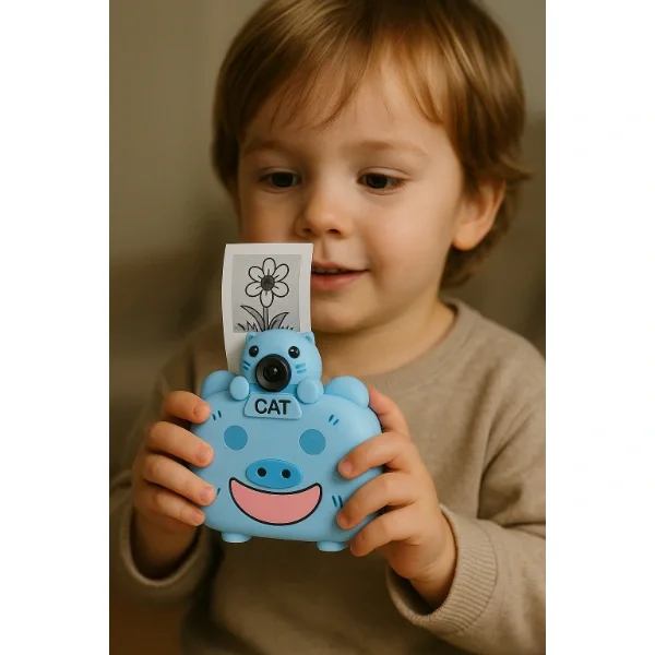 KAMERALI FOTOĞRAF YAZICISI MAVİ RENKÜrün ÖzellikleriKameralı fotoğraf yazıcısı, çocukların yaratıcılığını eğlenceli bir şekilde destekleyen sevimli tasarımıyla dikkat çeker. 2.0 inç IPS ekranı sayesinde çekilen fotoğraflar net bir şekilde görüntülenebilir. 360 derece dönebilen lensi farklı açılardan çekim yapma imkanı sunar. 1080P çözünürlük ile kaliteli fotoğraf çekimi yapabilir. 1200 mAh bataryası uzun süreli kullanım sağlar ve TYPE-C şarj girişi ile hızlı şarj edilebilir. Maksimum 32GB TF kart desteği sayesinde bolca fotoğraf saklanabilir. 2 yıl garantili bu ürün, hem pratik hem de eğlenceli bir kullanım sunar.Paket İçeriği1 adet Kameralı Fotoğraf Yazıcısı Mavi Renk