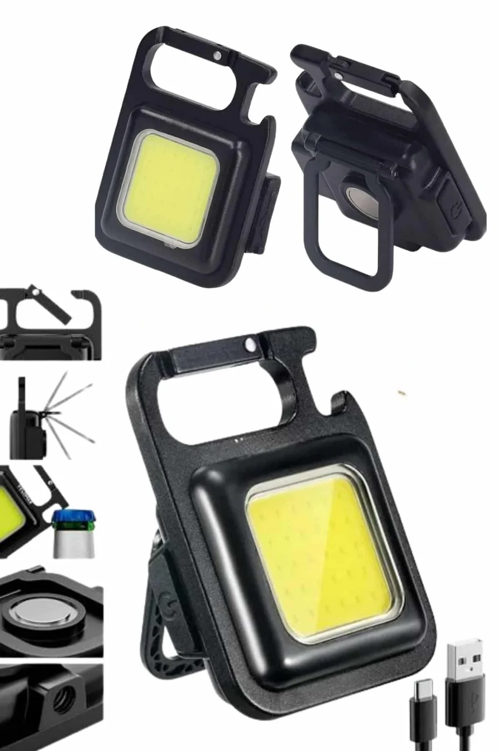 Bu kompakt ve kullanışlı mini LED fener, güçlü COB ışık kaynağı sayesinde etkileyici bir parlaklık sunarak karanlık ortamlarda net görüş sağlar. Küçük boyutuna rağmen yüksek performans sunan bu anahtarlık tipi fener, cebinizde, çantanızda ya da anahtarlığınıza takılı şekilde kolayca taşınabilir. Üç farklı aydınlatma modu (yüksek, düşük ve flaş) sayesinde farklı ihtiyaçlara uyum sağlarken, arkasında bulunan mıknatıslı yüzey ve entegre askı aparatı sayesinde pratik kullanım imkânı sunar. Şarj edilebilir bataryası, USB Type-C girişiyle kolaylıkla şarj edilebilir ve uzun süreli kullanım vadeder. Su sıçramalarına ve darbelere karşı dayanıklı yapısıyla dış mekan aktiviteleri, acil durumlar, kamp, yürüyüş, tamir işleri gibi birçok alanda güvenilir bir yardımcıdır. Şişe açacağı fonksiyonuyla günlük kullanımda da işlevselliğini artırır. Dayanıklı gövdesi ve hafif yapısı ile her an yanınızda taşımak isteyeceğiniz çok yönlü bir aydınlatma çözümüdür.