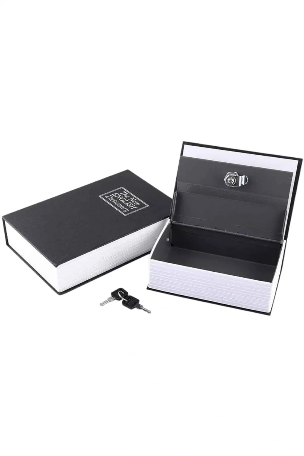 Kitap şeklinde tasarlanmış bu gizli kasa, hem eşyalarınızı hırsızlıktan korumanıza yardımcı olur hem de günlük kullanımda pratik bir çözüm sunar. Akşam eve geldiğinizde anahtarlarınızı, telefonlarınızı veya evden çıkarken yanınıza almanız gereken diğer tüm eşyaları bu kasada düzenli bir şekilde saklayabilirsiniz. Böylece evden çıkarken "Acaba onları nereye koydum?" diye vakit kaybetmeden tüm ihtiyaçlarınıza kolayca ulaşabilirsiniz.Ürün, İngilizce sözlük görünümüyle dikkat çekmeden ortamda doğal bir şekilde yer alır. Dış yüzeyi ciltli kitap görünümünde tasarlanmış olan bu gizli kasanın iç kısmı ise dayanıklı metalden üretilmiştir. Sağlam yapısı sayesinde eşyalarınızı güvenle korur. Ürünün kullanımı oldukça pratiktir; birlikte gelen 2 adet anahtar sayesinde yalnızca size özel bir güvenlik sağlar.Ürün Boyutları: 18 cm uzunluk x 11.5 cm genişlik x 5.5 cm derinlikPaket İçeriği: 1 adet kitap şeklinde gizli kasaBu şık ve işlevsel gizli kasa, hem eşyalarınızı güvende tutar hem de evinizde veya ofisinizde düzenli bir ortam yaratır. Kullanışlı ve özgün tasarımıyla herkesin ilgisini çekecek bir üründür